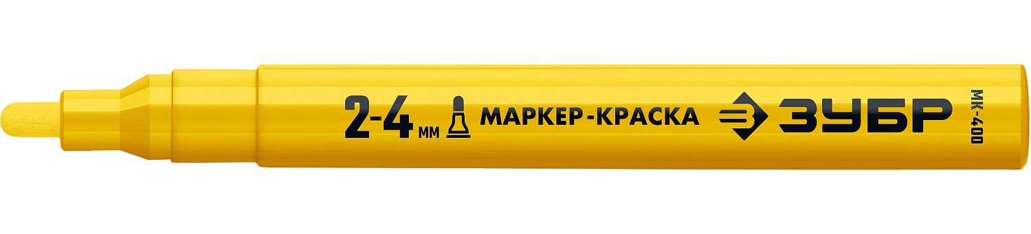 ЗУБР желтый, 2-4 мм, круглый наконечник, маркер-краска МК-400 06325-5 Профессионал