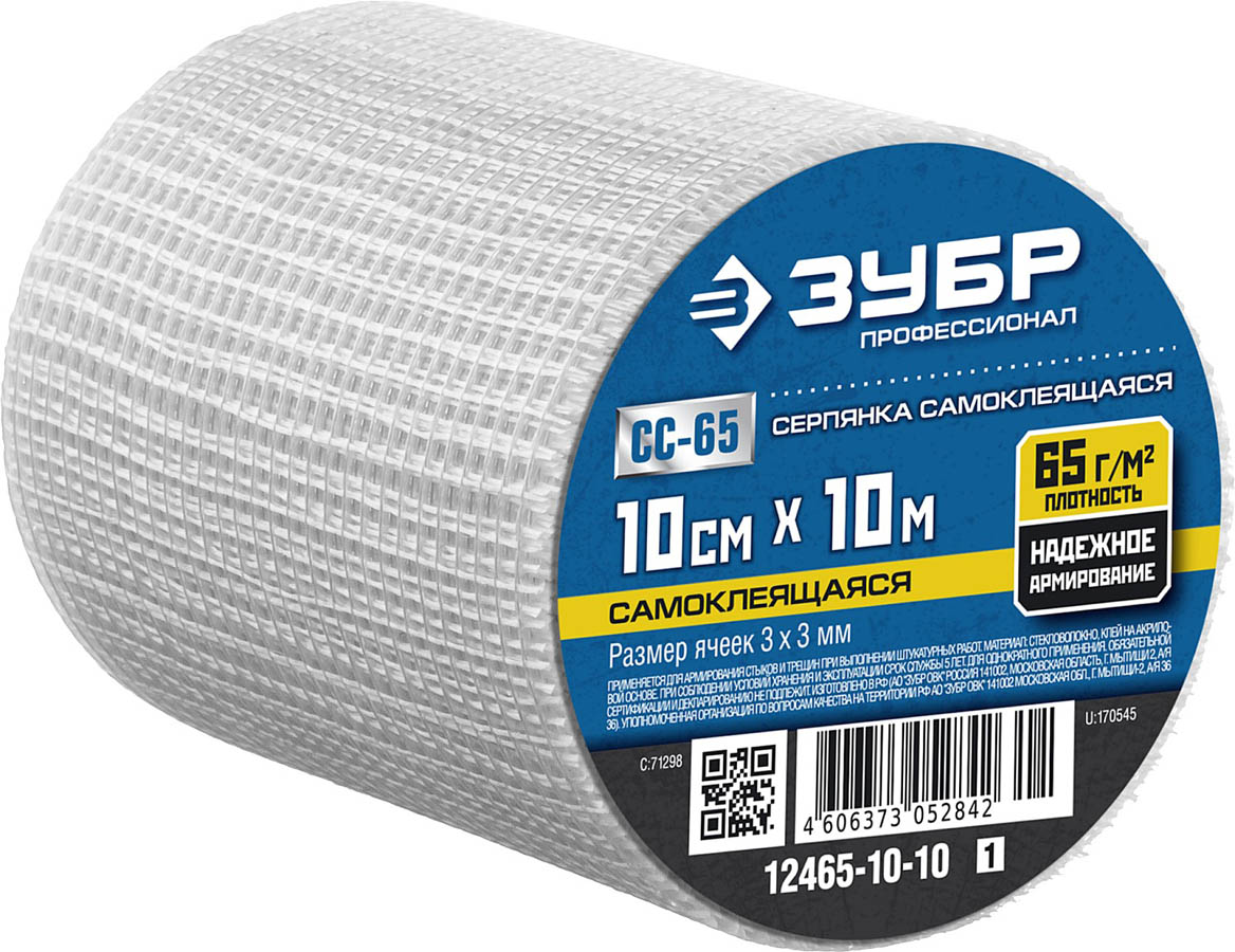 ЗУБР 10 см х 10 м, 3х3 мм, сетка самоклеящаяся стеклотканевая 12465-10-10_z01 Профессионал
