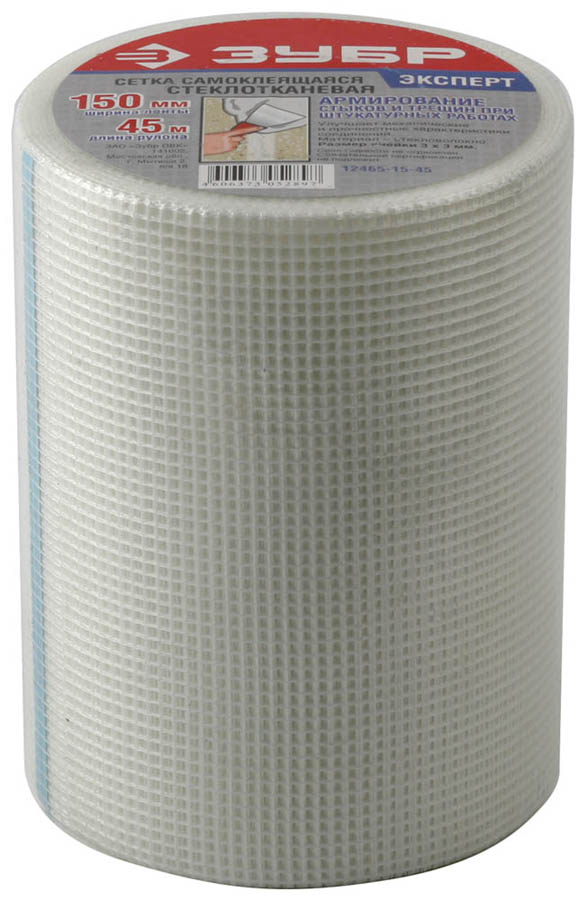 ЗУБР 15 см х 45 м, 3х3 мм, сетка самоклеящаяся стеклотканевая 12465-15-45
