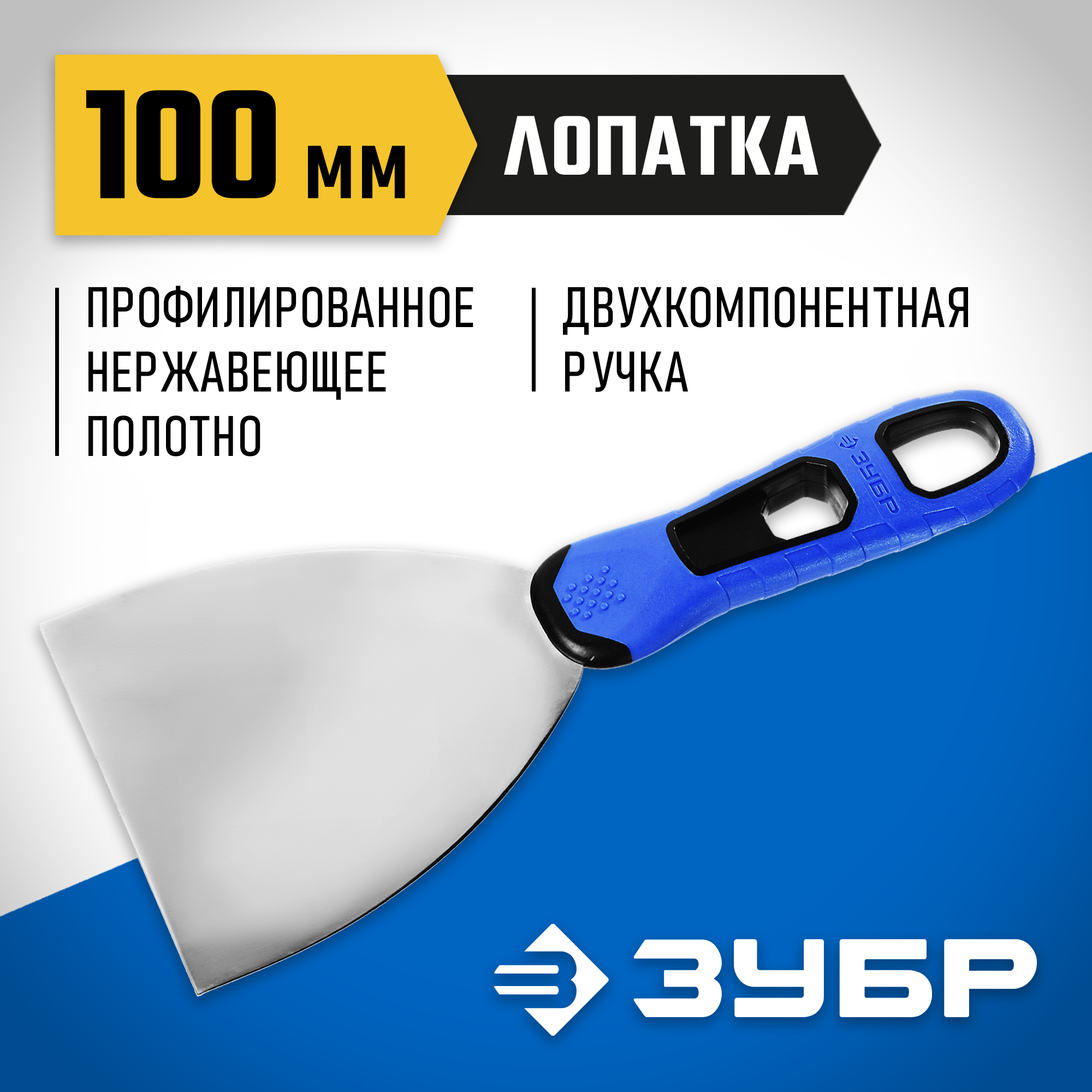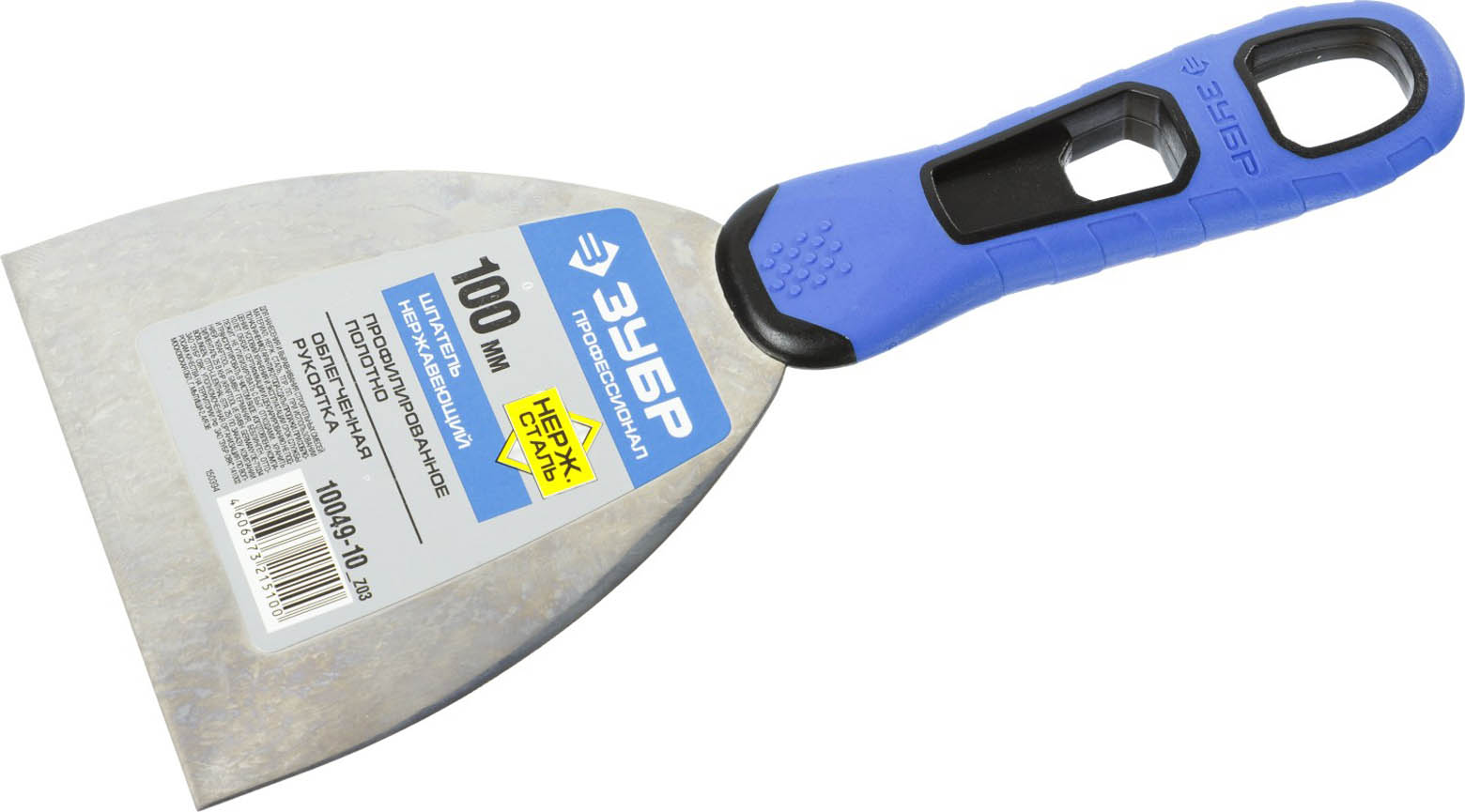 ЗУБР 100 мм, нержавеющее полотно, двухкомпонентная рукоятка, шпатель 10049-10_z03 Профессионал