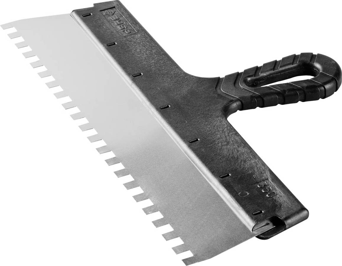 Шпатель фасадный ЗУБР 10078-35-08, предназначен для нанесения и выравнивания строительных и клеевых смесей. Благодаря зубчатой кромке шпатель идеально подходит для работы со строительными и клеевыми смесями, полотно из нержавеющей стали обеспечивает надежность и долгий срок службы инструмента, а удобная пластмассовая рукоятка создает условия для комфортной работы.