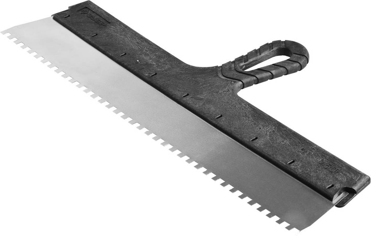 Шпатель фасадный ЗУБР 10078-45-06, предназначен для нанесения и выравнивания строительных и клеевых смесей. Благодаря зубчатой кромке шпатель идеально подходит для работы со строительными и клеевыми смесями, полотно из нержавеющей стали обеспечивает надежность и долгий срок службы инструмента, а удобная пластмассовая рукоятка создает условия для комфортной работы.