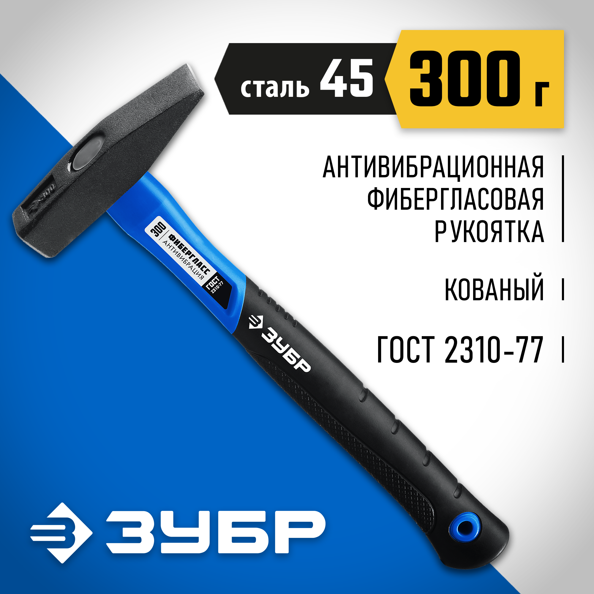 ЗУБР 300 г, молоток слесарный с фиберглассовой рукояткой 20020-03_z01 Профессионал