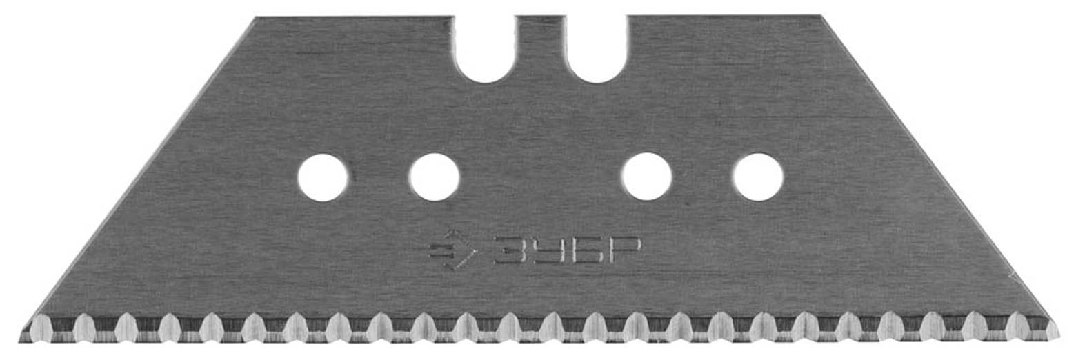 Сменное лезвие трапеция ЗУБР 09718-24-10, предназначено для профессионального применения. Обладают повышенным ресурсом, обеспечивают длительную и качественную работу. Зубчатая заточка позволяет разрезать особо твёрдые материалы: ковровые покрытия повышенной плотности , утеплитель, резину, верёвки и т. д. Особо высокая режущая способность по пористым и волокнистым материалам. Лезвия изготовлены из улучшенной инструментальной стали У12А, что увеличивает срок их службы. Криогенная закалка обеспечивает непревзойденную твердость и прочность режущей кромки. Двойная заточка сохраняет лезвие острым в течении длительного времени. Пластиковый футляр для безопасного хранения и быстрого извлечения лезвий.