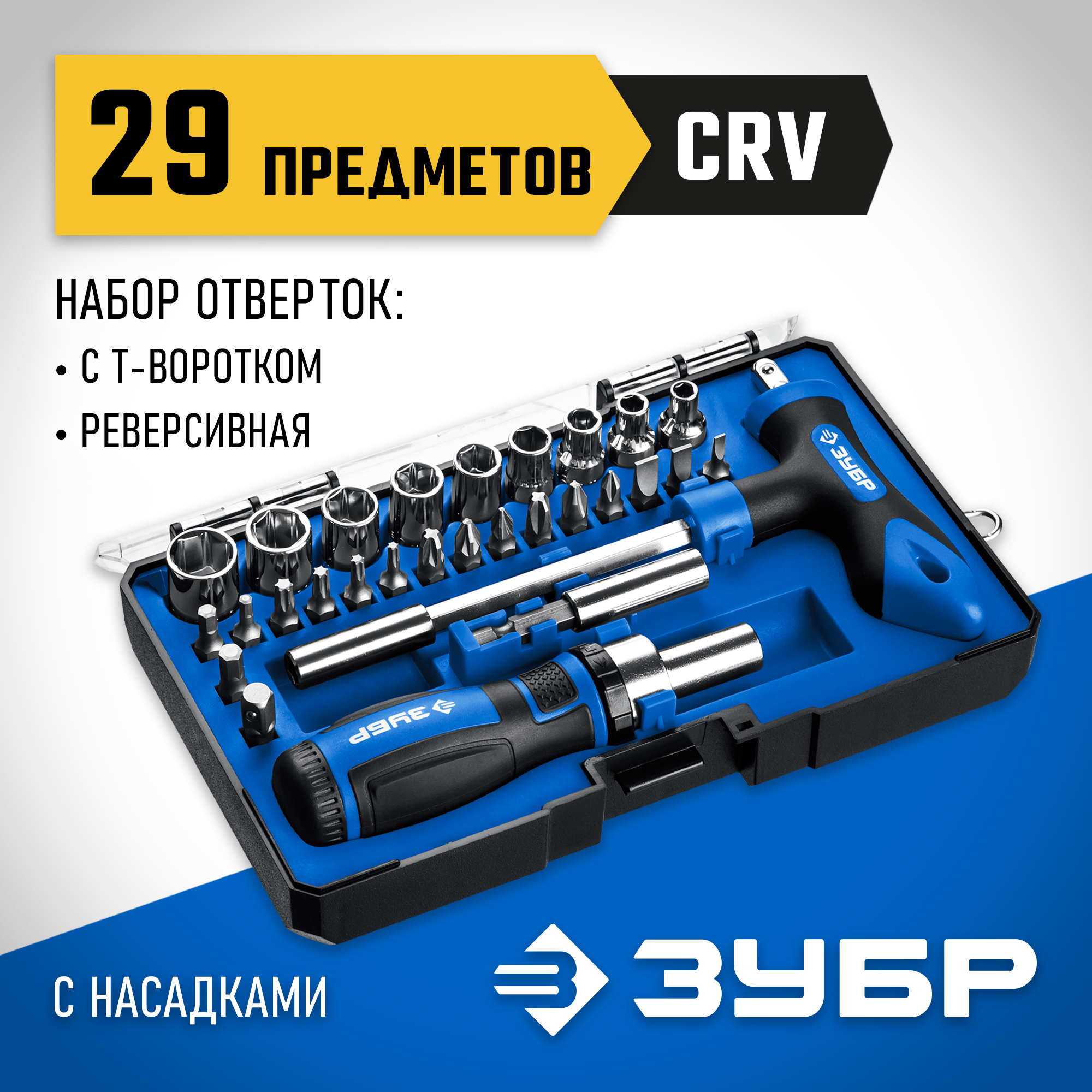 ЗУБР 29 шт., реверсивная и Т-образная отвертки в наборе Компакт-Т29 25168-H29_z01 Профессионал