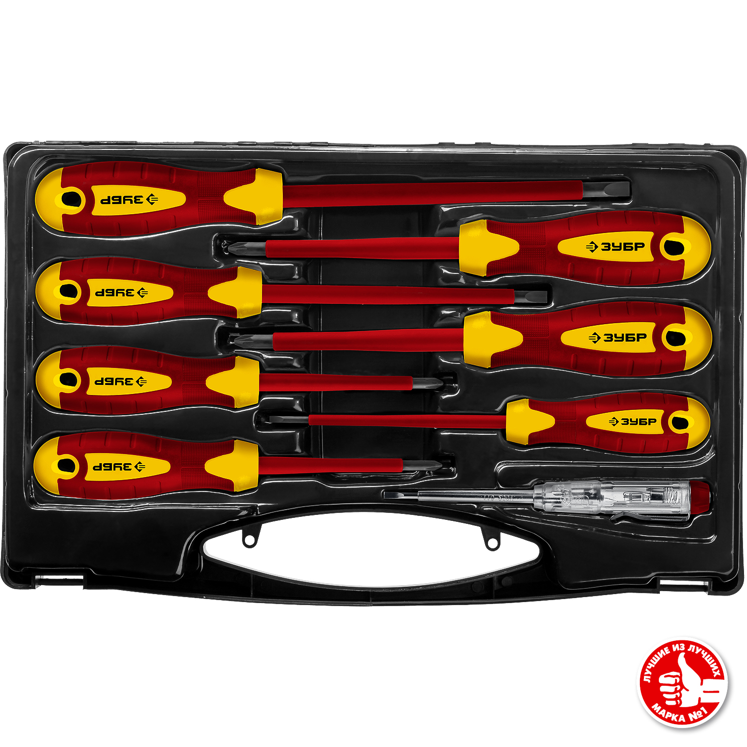 ЗУБР 8 шт., набор отверток+тестер 25268 Профессионал