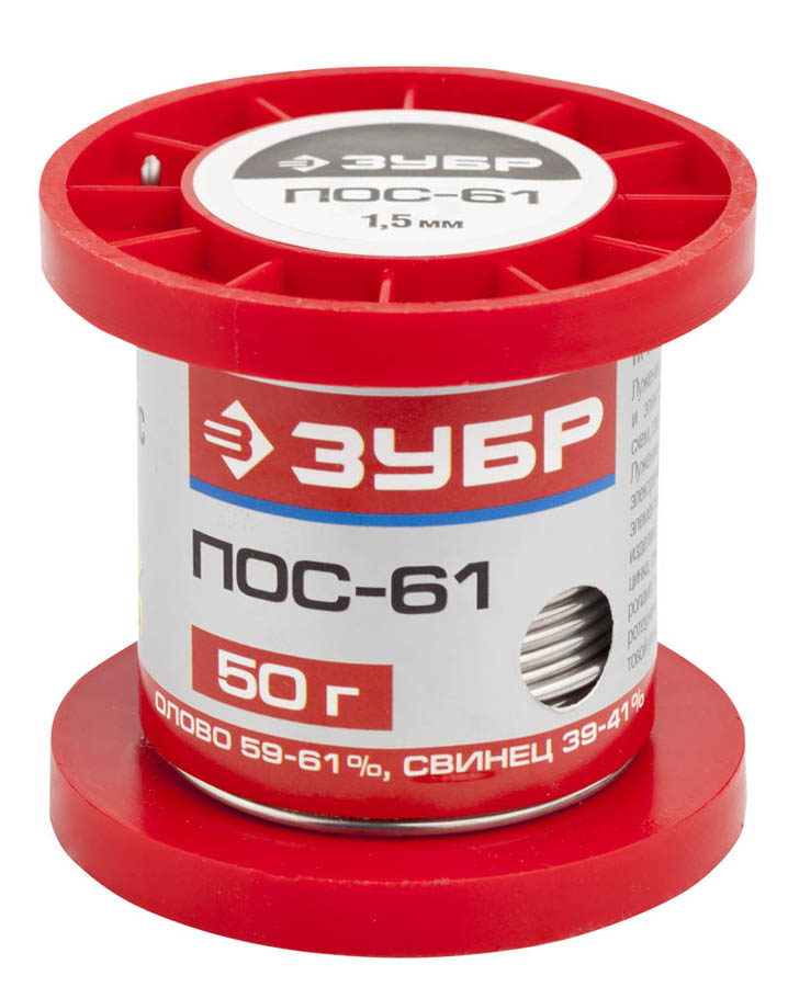 ЗУБР 50 г, ПОС 61, проволока, 1,5 мм, припой 55450-050-15