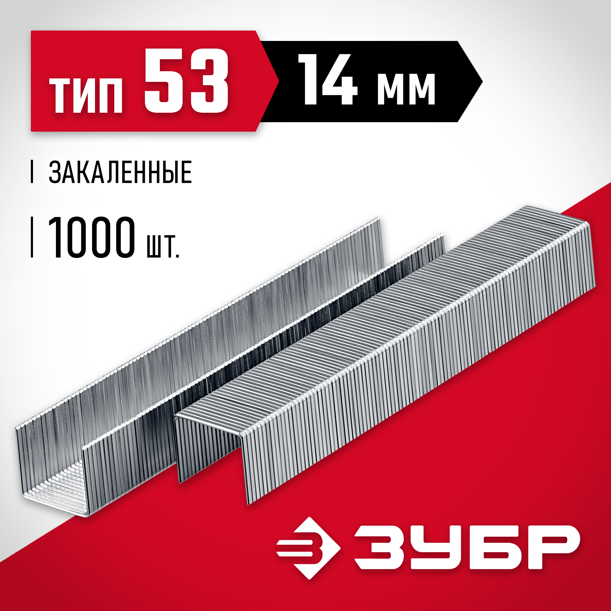 ЗУБР скобы тип 53 (A / 10 / JT21), 14 мм, 1000 шт., скобы тонкие закаленные 31625-14 Мастер