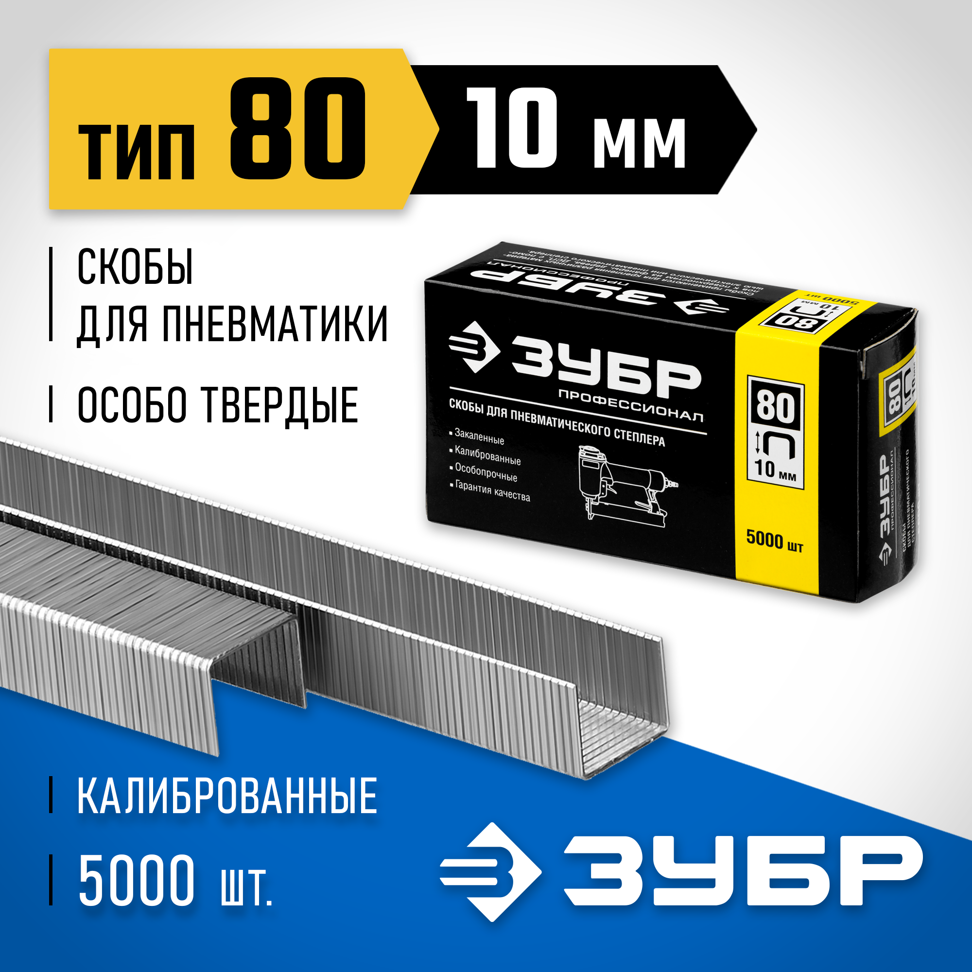 ЗУБР скобы тип 80, 10 мм, скобы особотвердые 31880-10 Профессионал