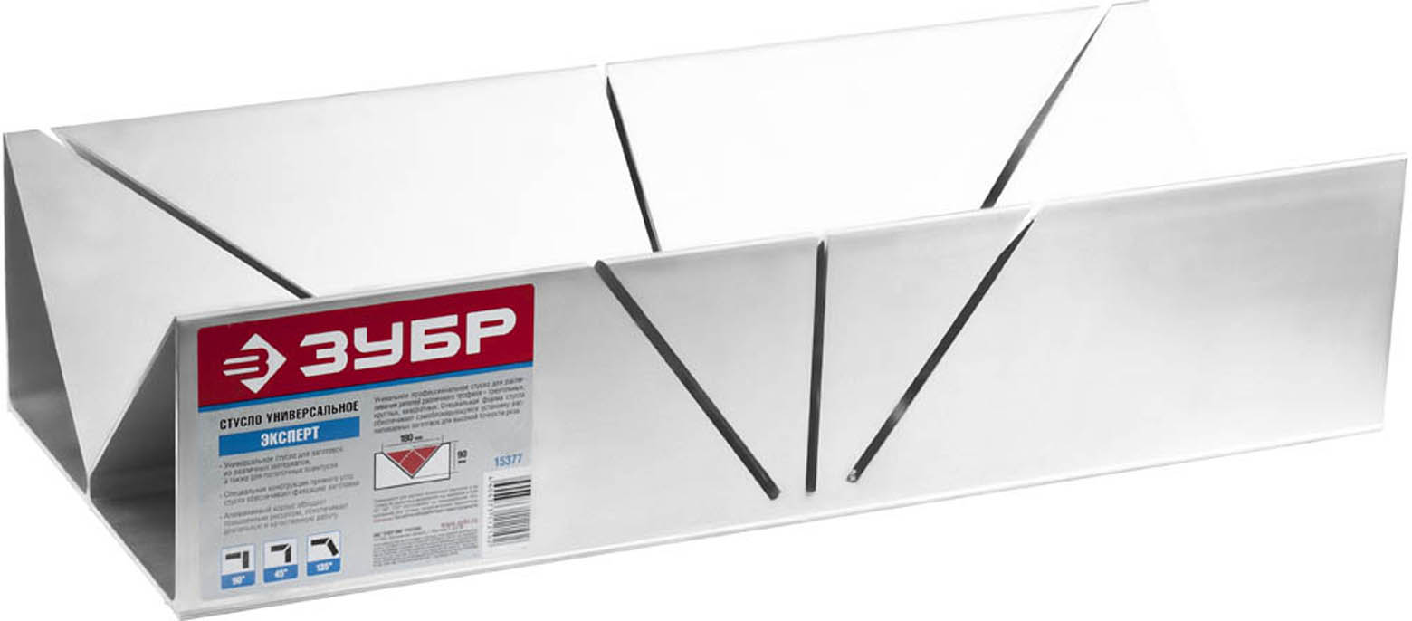Стусло ЗУБР 15377, предназначено для распила потолочных плинтусов и заготовок из различных материалов под заданным углом: 45°, 90°, 135°. Для распиливания деталей различного профиля – треугольных, круглых, квадратных. Специальная форма стусла обеспечивает самоблокирующуюся установку распиливаемых заготовок для высокой точности реза. Алюминиевый корпус обладает повышенным ресурсом, обеспечивает длительную и качественную работу.