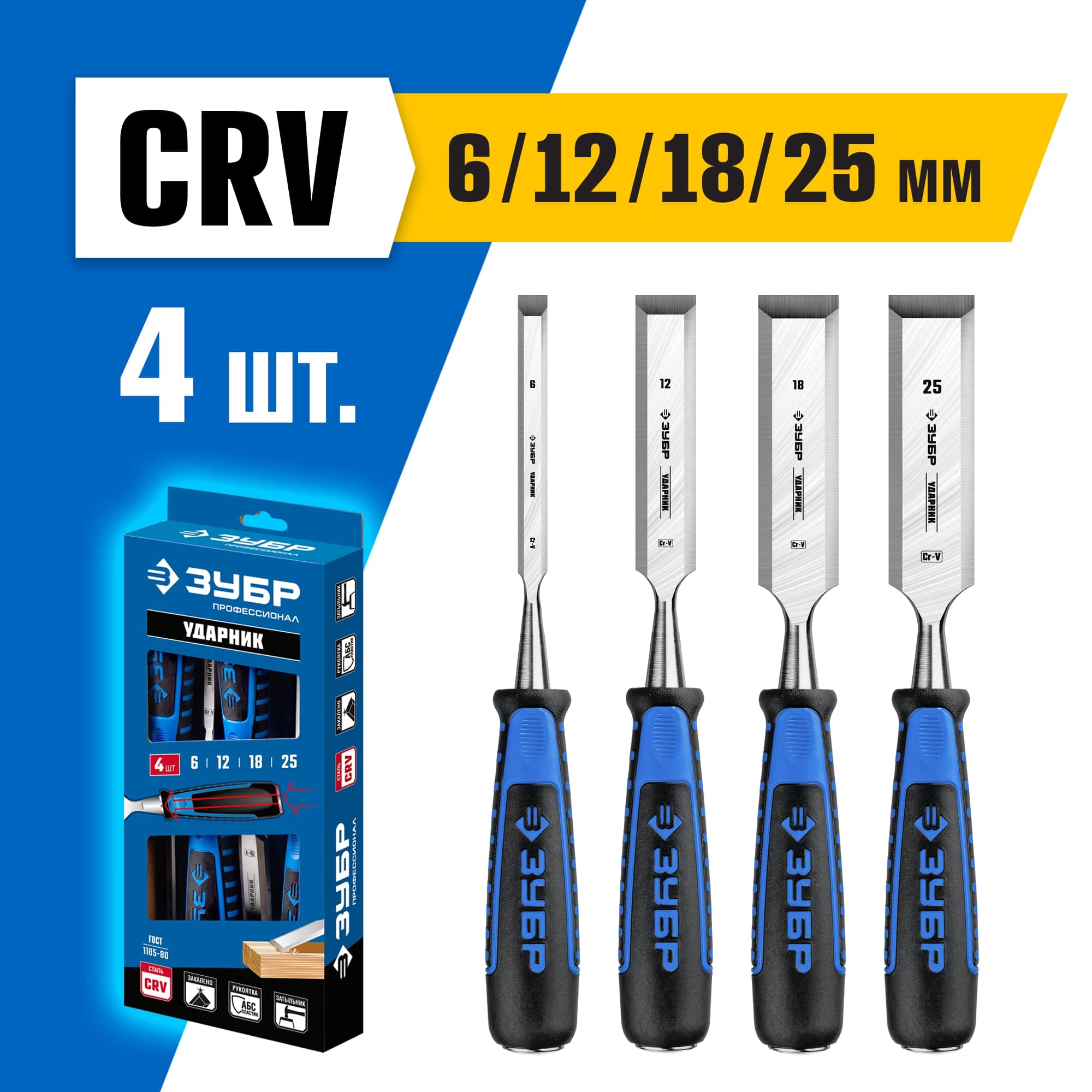 ЗУБР 4 шт, 6/12/18/25 мм, набор стамесок 18097-H4 Профессионал
