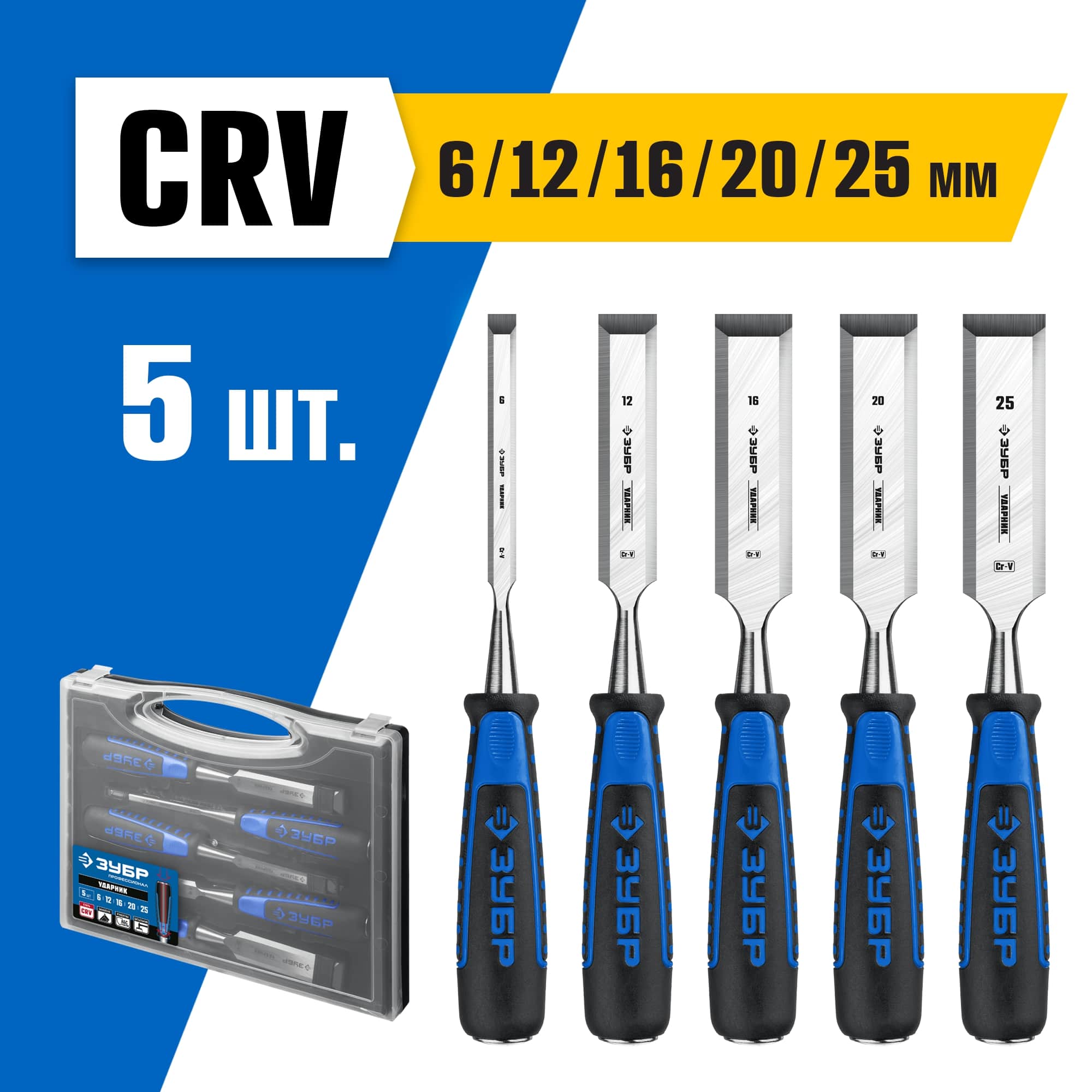 ЗУБР 5 шт, 6/12/16/20/25 мм, набор стамесок 18097-H5 Профессионал