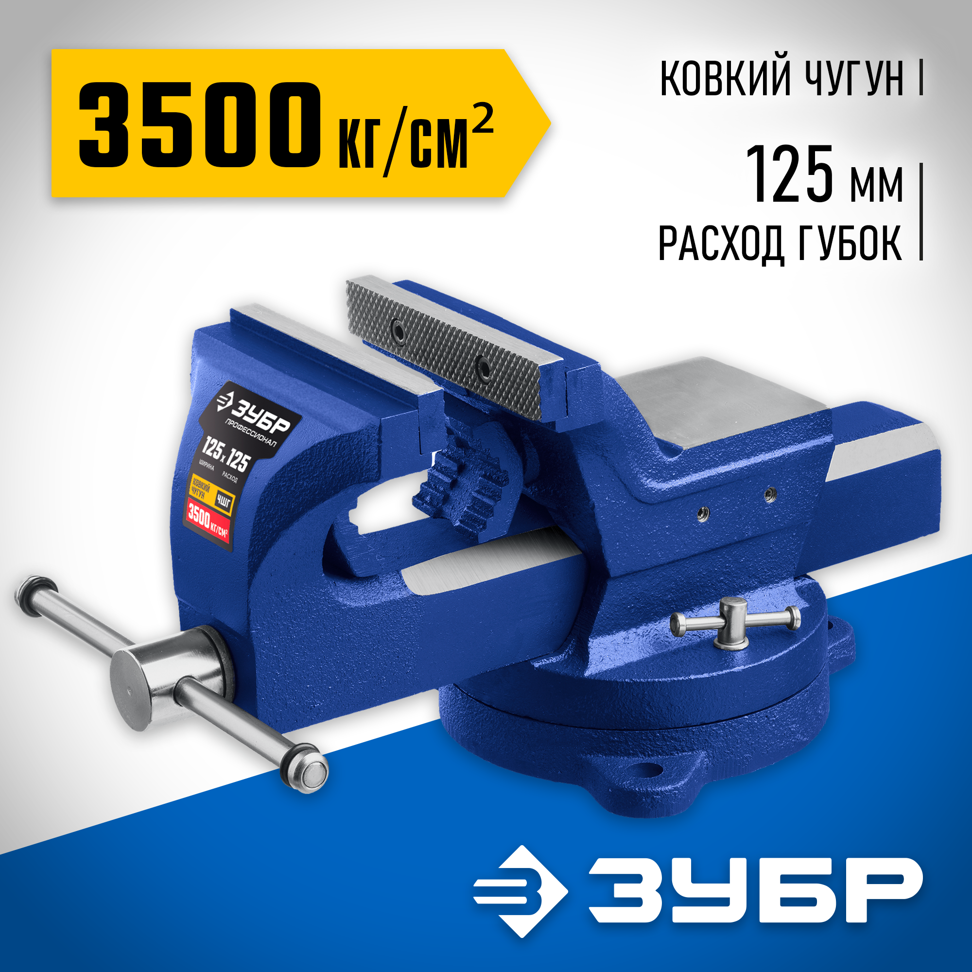 ЗУБР 125 мм, с регулировкой компенсации люфта, тиски индустриальные 32703-125_z01 Профессионал