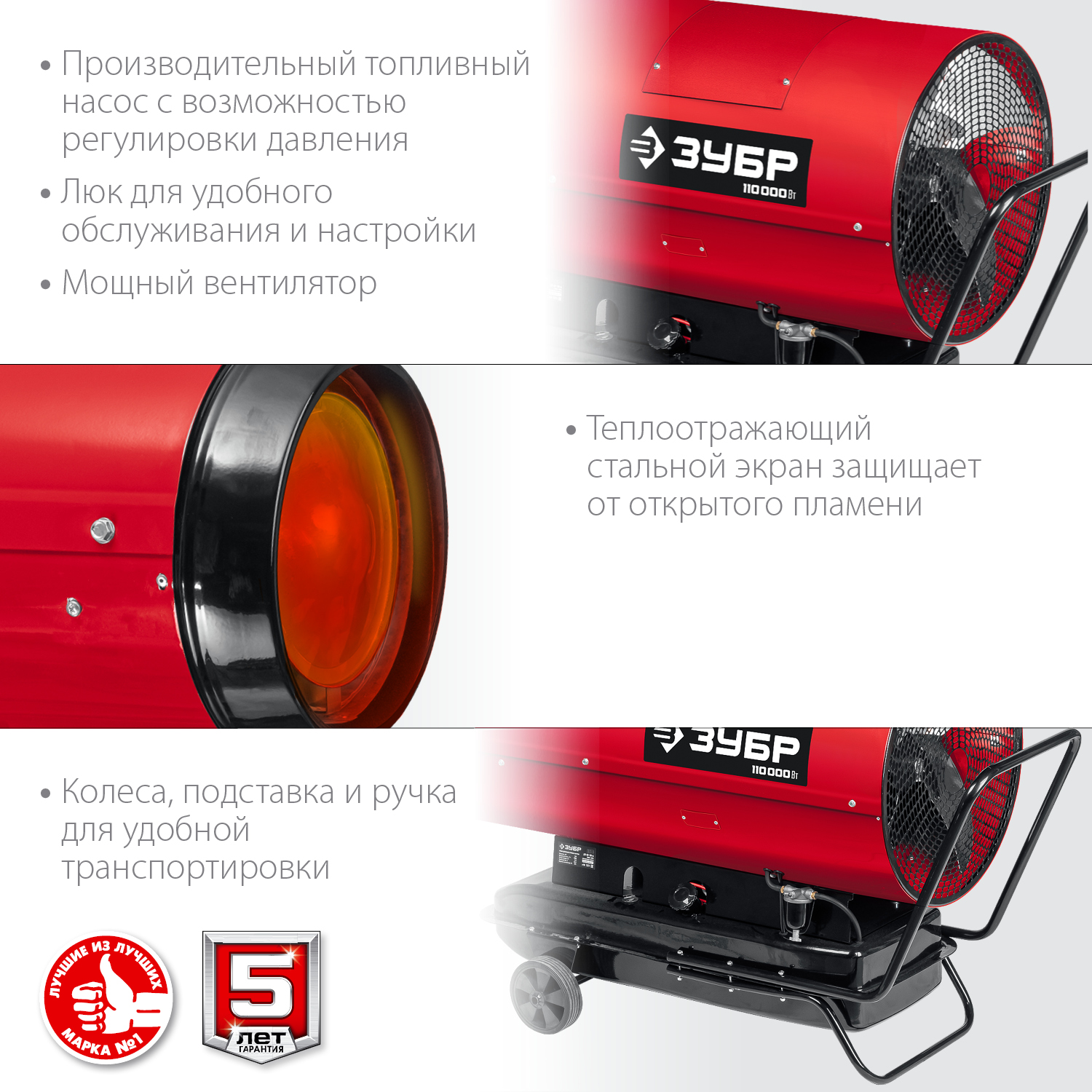 ЗУБР 110 кВт, прямой нагрев, дизельная тепловая пушка ДП-К8-110-Д Мастер