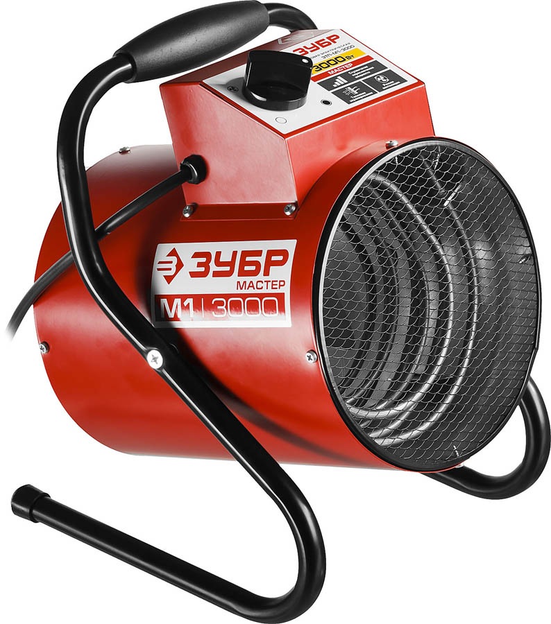 ЗУБР 3 кВт, гладкий ТЭН, пушка тепловая электрическая ЗТП-М1-3000 Компакт