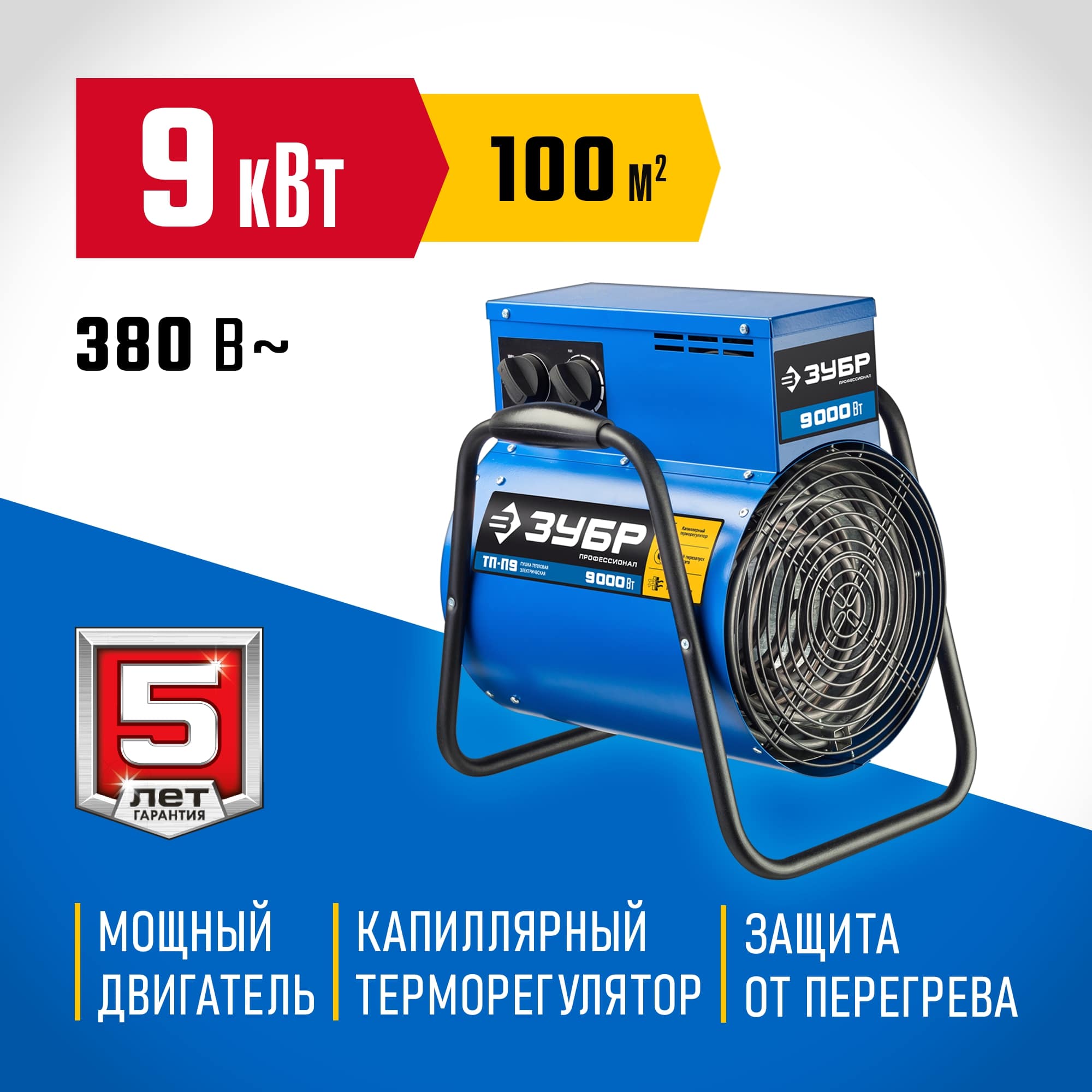 ЗУБР 9 кВт, электрическая тепловая пушка ТП-П9 Профессионал