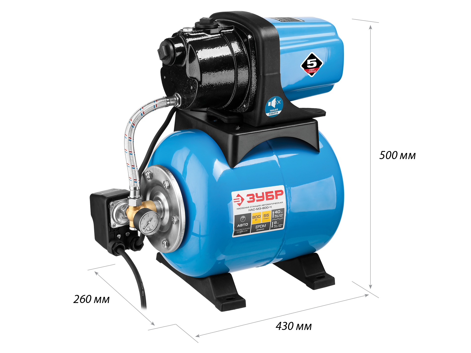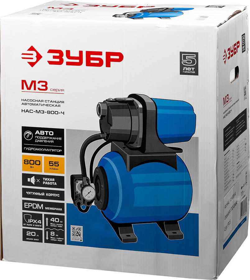 ЗУБР 800 Вт, 55 л/мин, станция насосная М3 НАС-М3-800-Ч