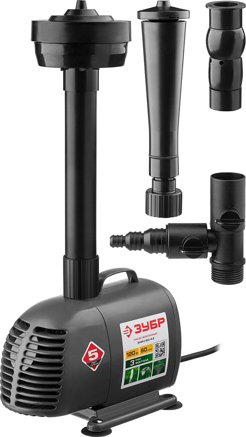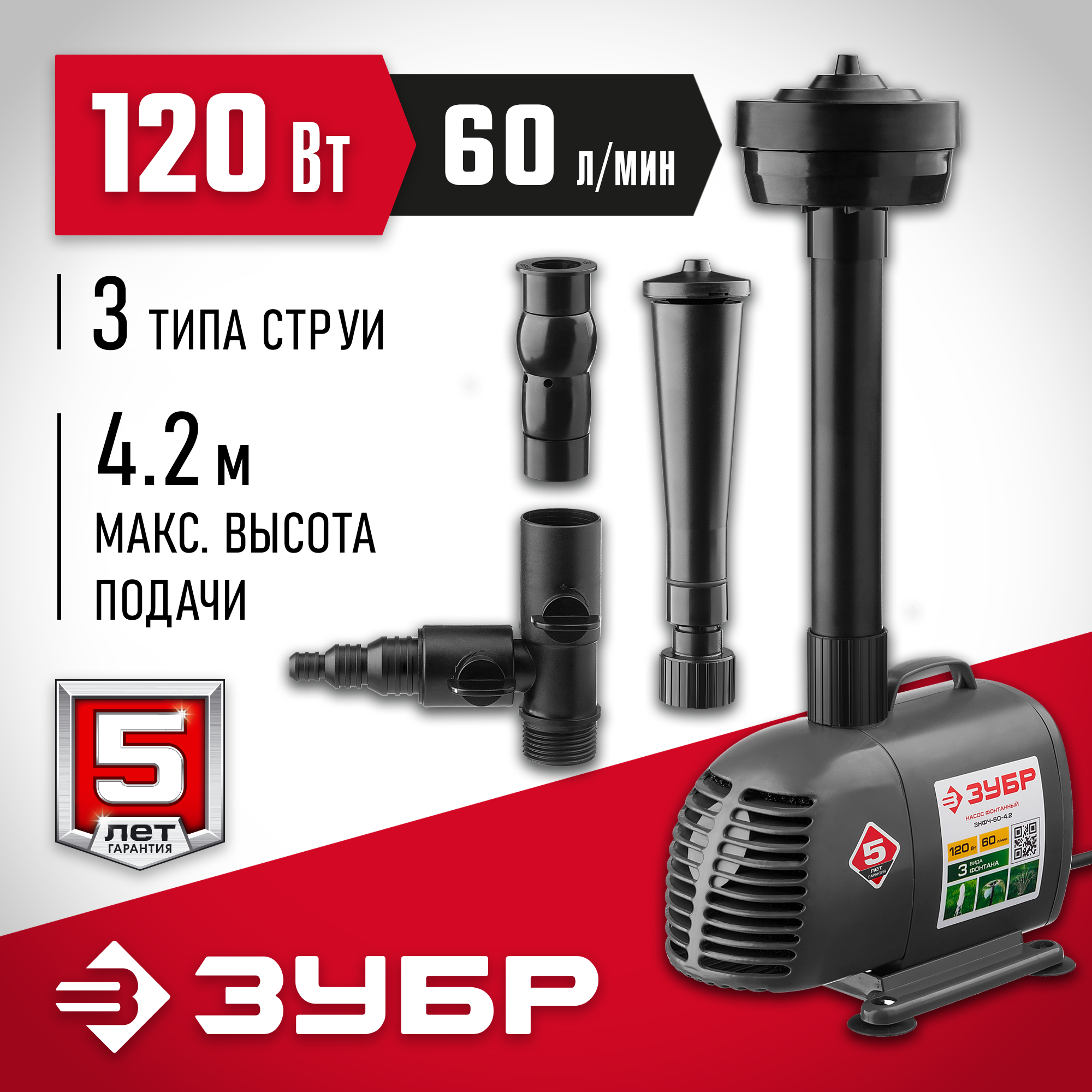 ЗУБР 120 Вт, 60 л/мин, насос фонтанный ЗНФЧ-60-4.2