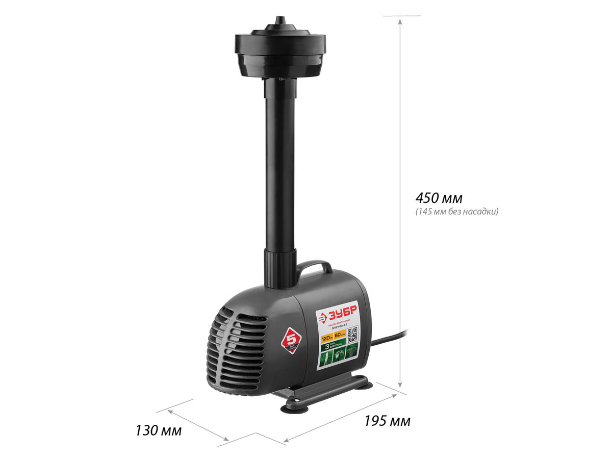 Насос фонтанный ЗУБР ЗНФЧ-60-4.2, предназначен для украшения водоемов фонтаном с различными типами струй, а также водопадом. Также может использоваться для перекачки чистой воды из водоемов с учетом технических характеристик модели. Простое и надежное устройство, позволяющее превратить обычный участок в замечательный сад. Три формы фонтанной струи-гейзер, колокольчик, каскад. Плавная регулировка струи ''колокольчик'' и легкая смена типа фонтана. Для чистой воды. Возможность организовать водопад. Удлинительная трубка в комплекте. Крепление к плиточному или пластиковому дну водоема. Губчатый фильтр для защиты насоса от попадания частиц грязи.