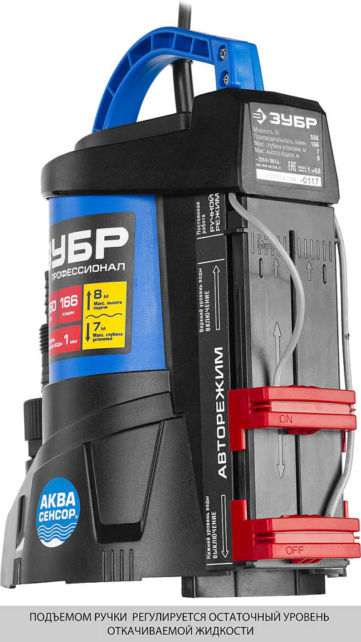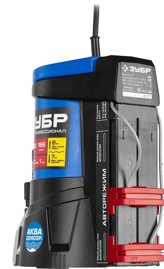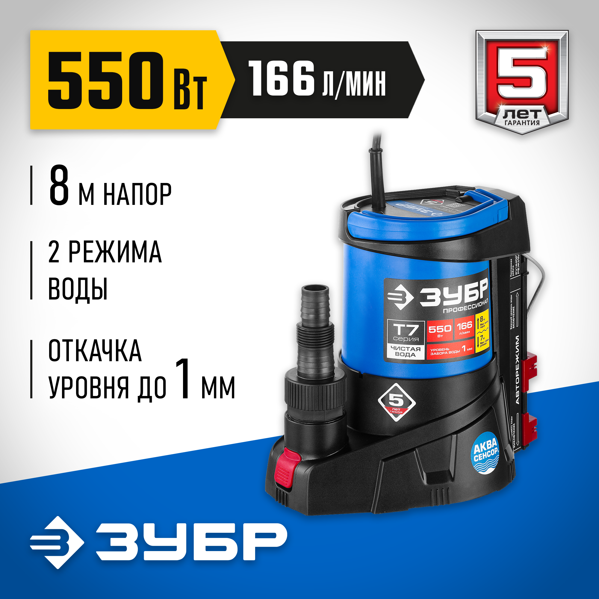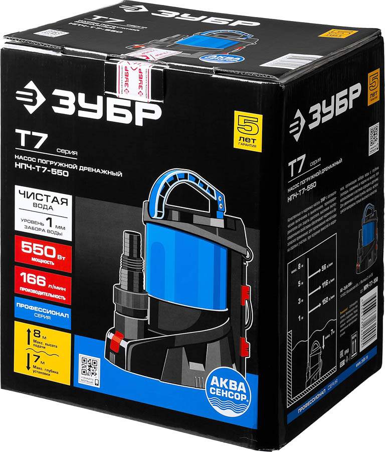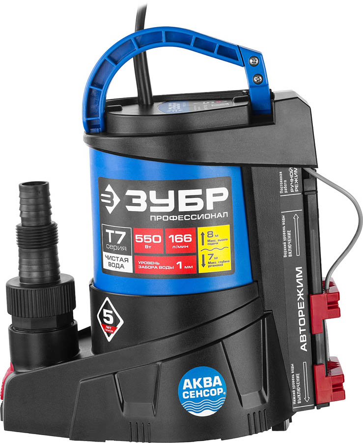 ЗУБР 550 Вт, 166 л/мин, насос погружной дренажный для чистой воды НПЧ-Т7-550 Профессионал