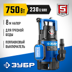 ЗУБР 750 Вт, 230 л/мин, насос погружной дренажный для грязной воды НПГ-Т3-750 Профессионал