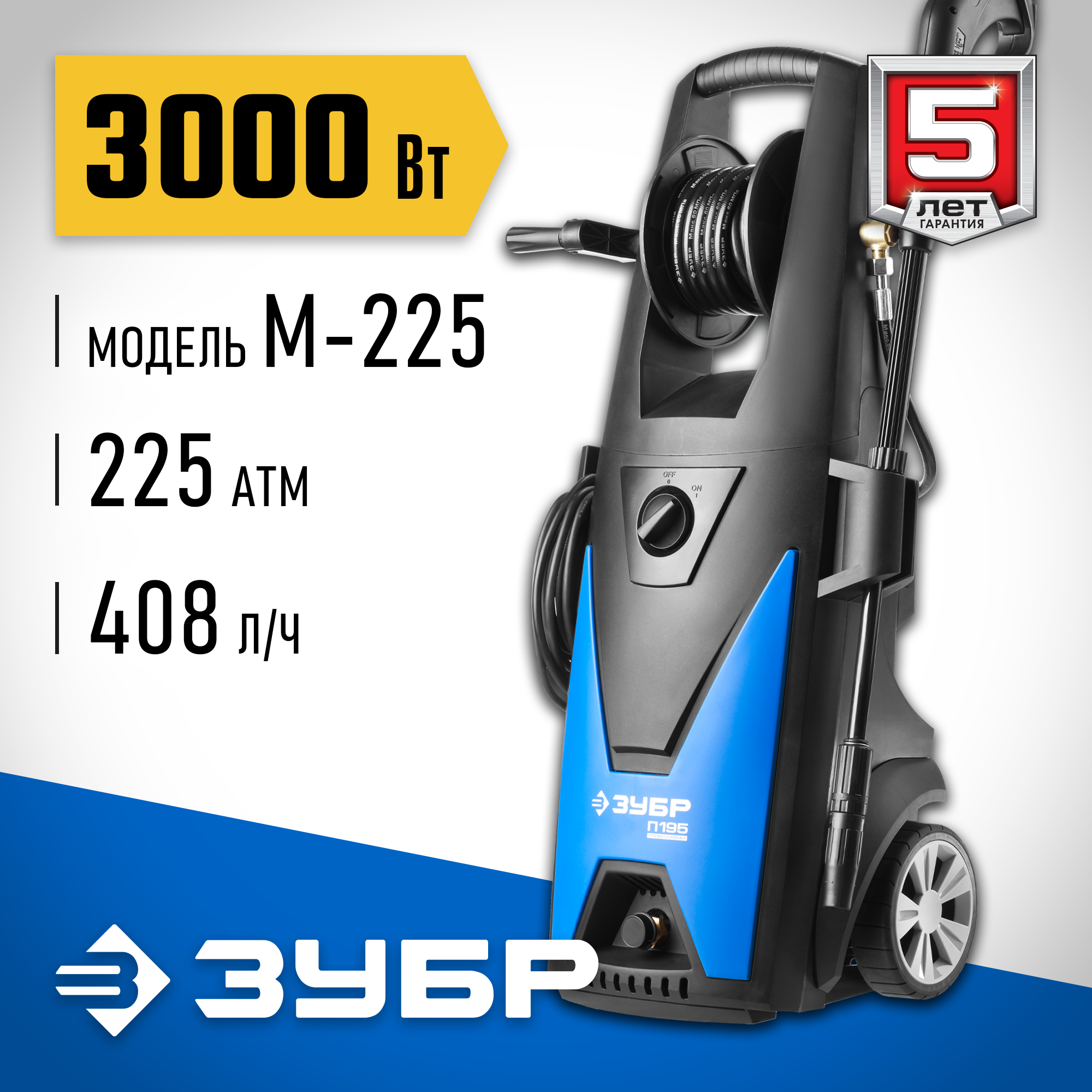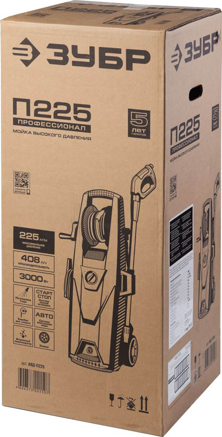 Мойка высокого давления ЗУБР АВД-П225, бесщёточный двигатель, серия Профессионал