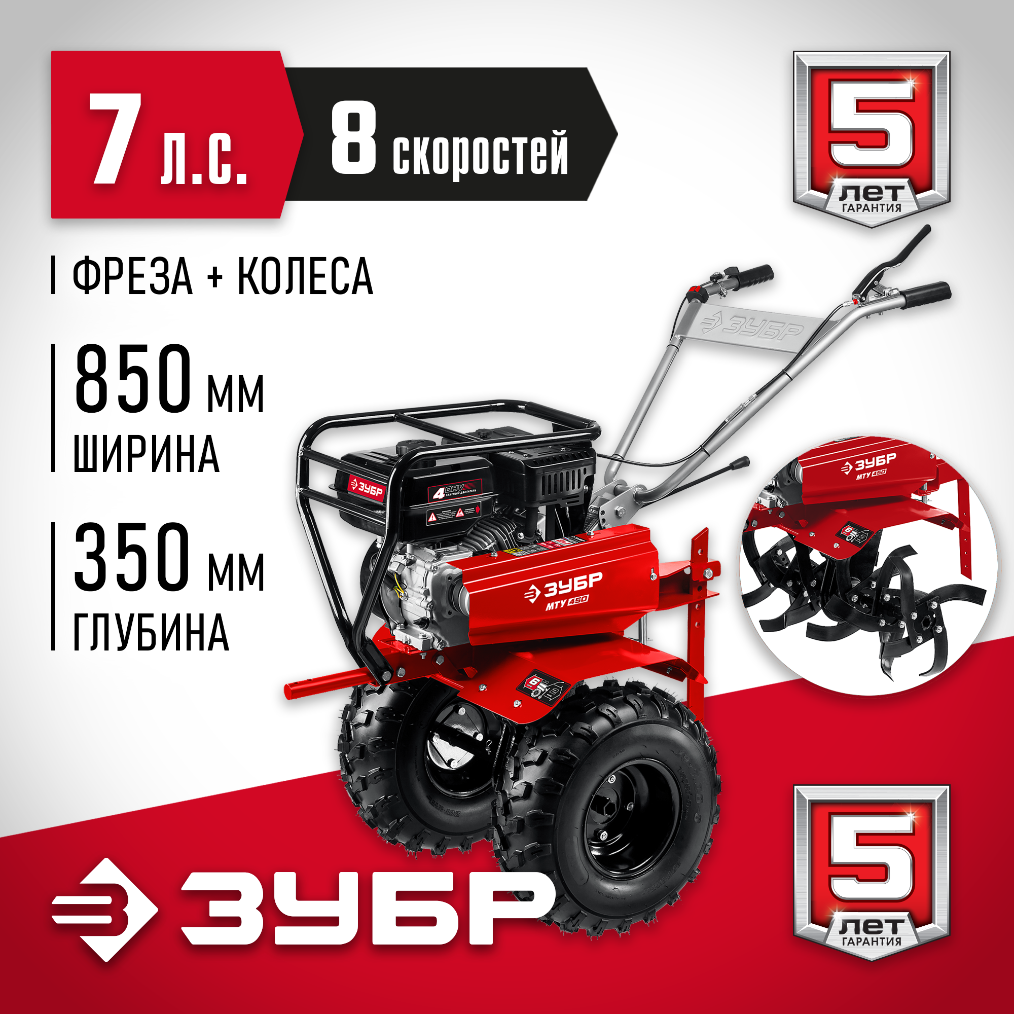 ЗУБР 7 л.с., 850 мм, мотоблок бензиновый усиленный МТУ-450 Мастер