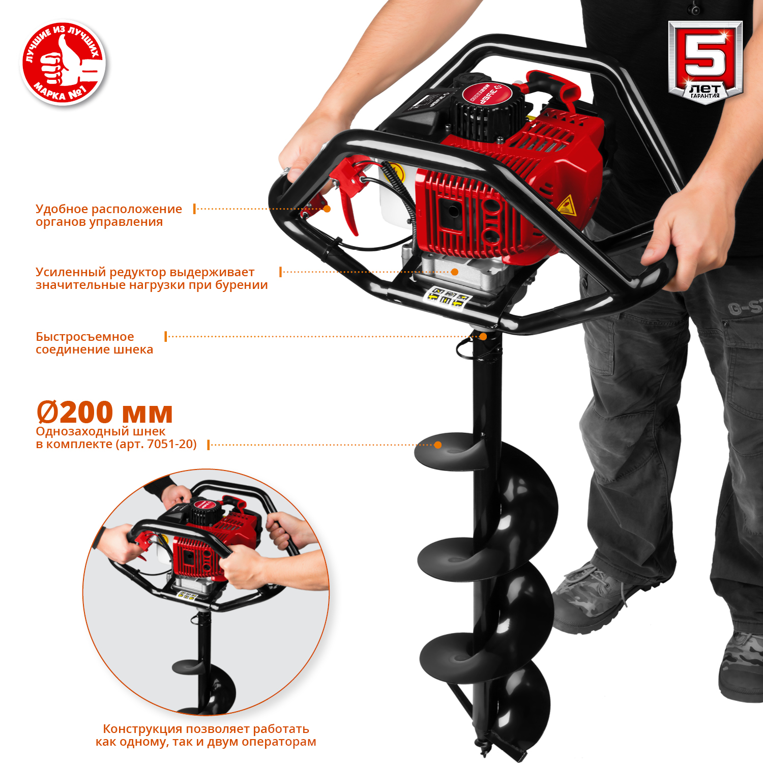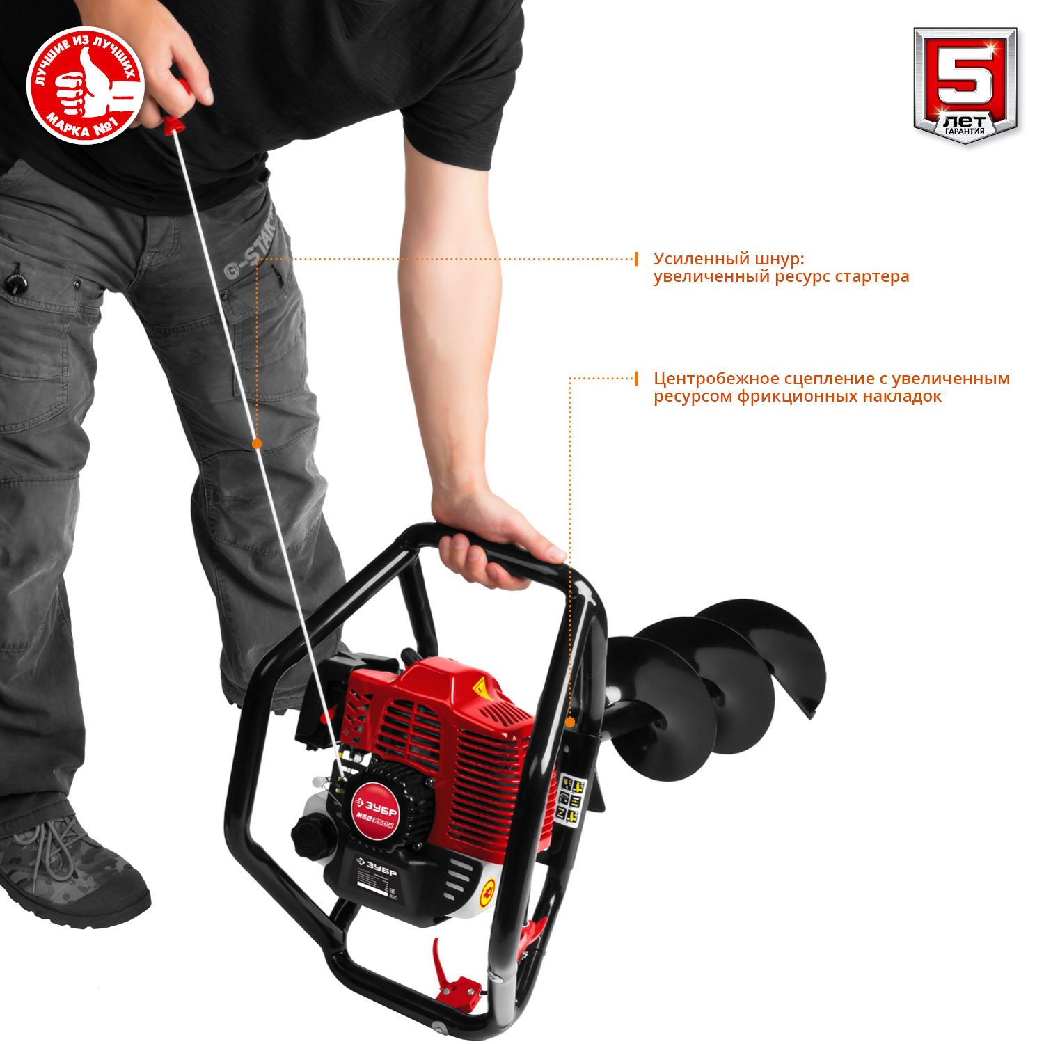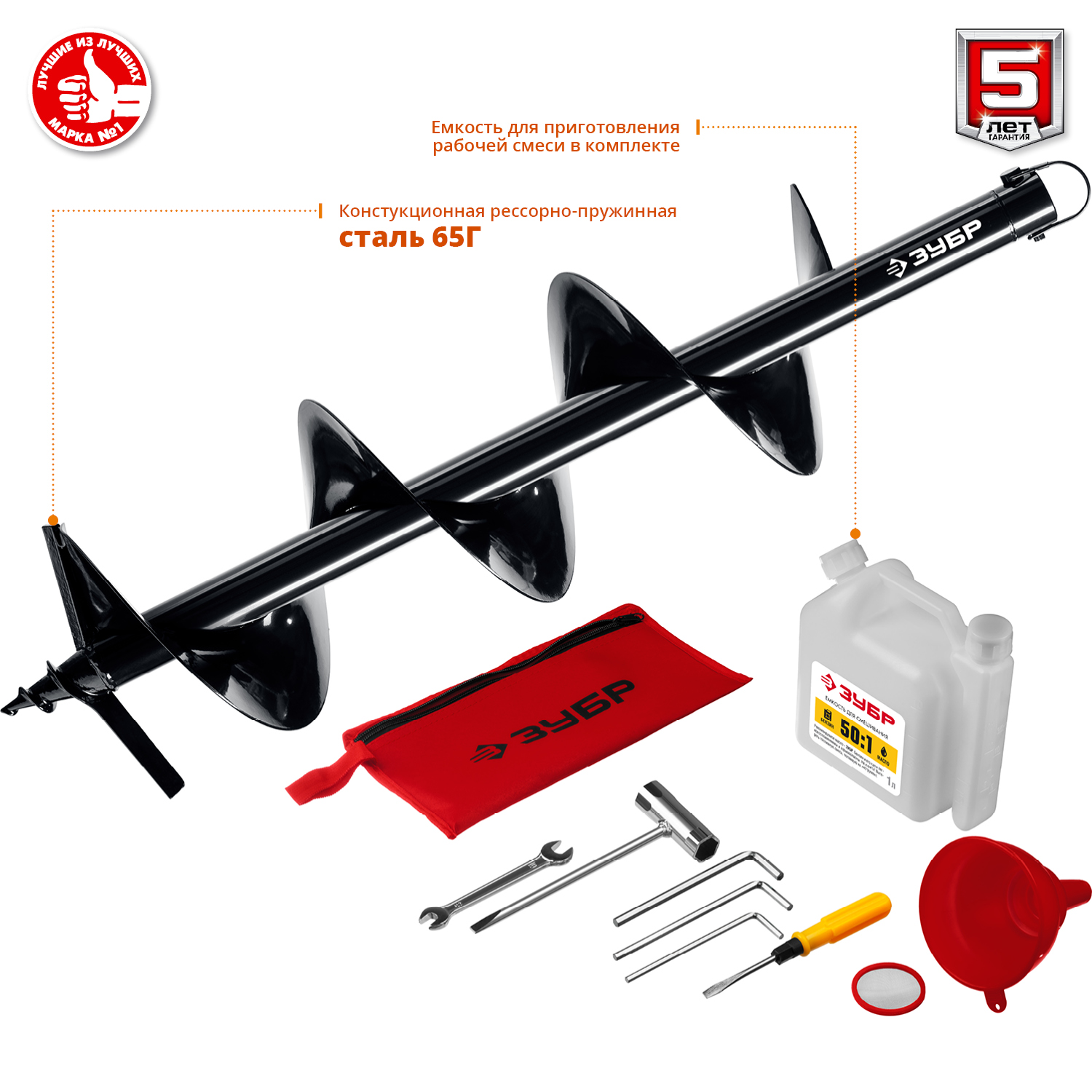 ЗУБР Ø60-250 мм, 52 см³, 2 оператора, со шнеком, мотобур (бензобур) МБ2-250 Н Мастер
