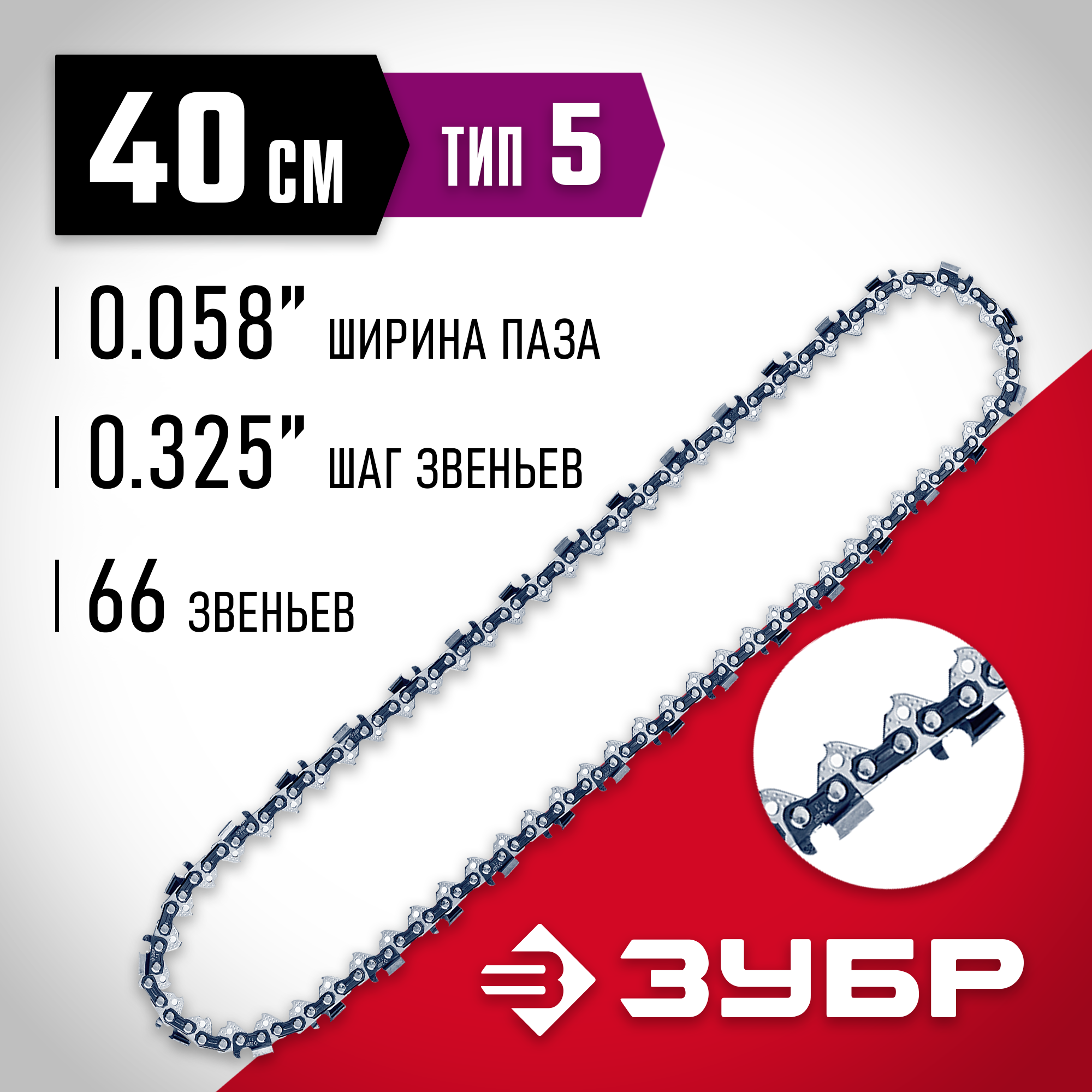 ЗУБР тип 5 шаг 0.325'' паз 1.5 мм 66 звена цепь для бензопилы 70305-40 Мастер
