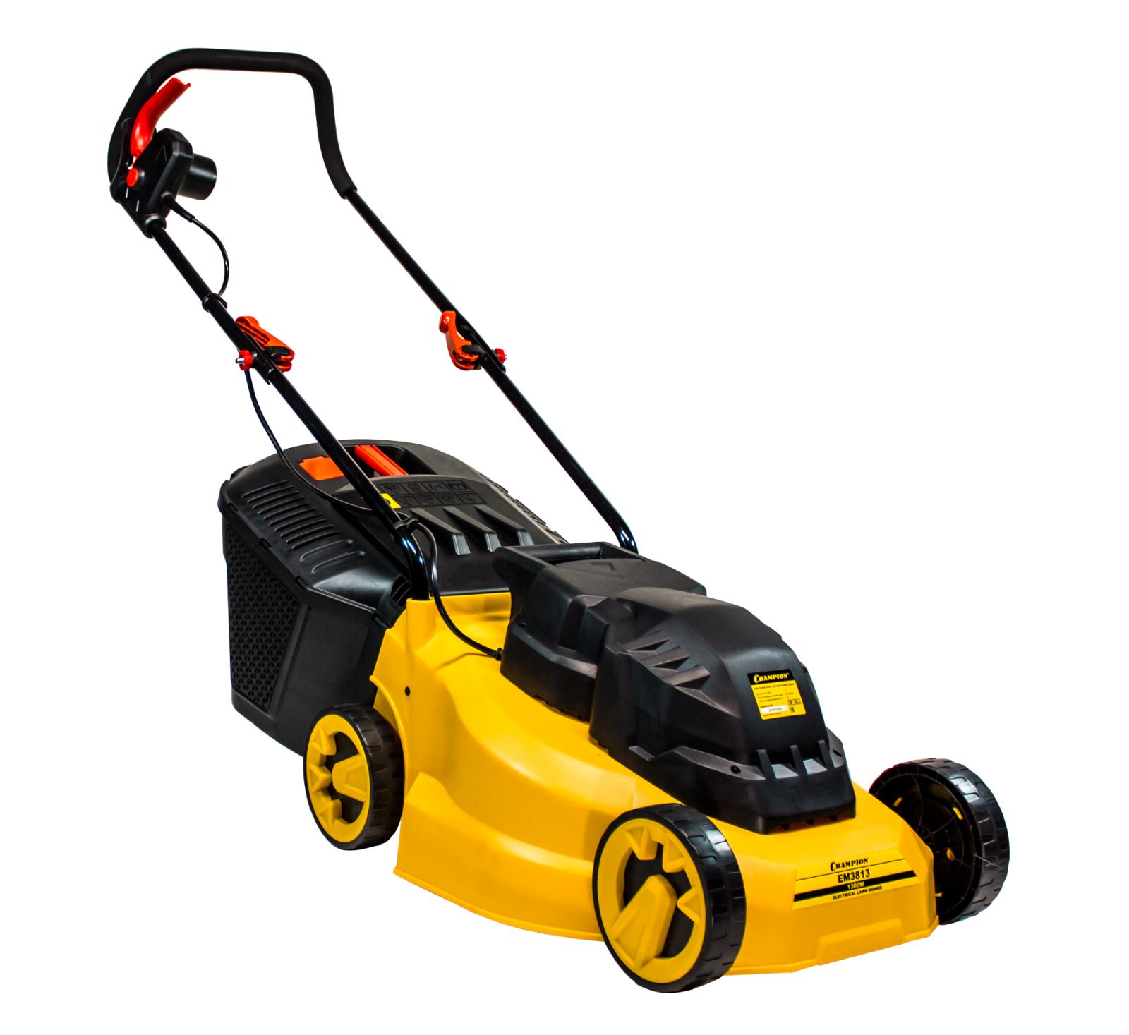 Удобная и лёгкая несамоходная электрическая газонокосилка Champion EM3813 с электродвигателем мощностью 1300 Вт отлично подходит для кошения травы на лужайках с ровной поверхностью садовых или придомовых участков. Большой травосборник объёмом 35 л выполнен из пластика. Имеется складная регулируемая рукоятка, которая облегчает работу с данной газонокосилкой.