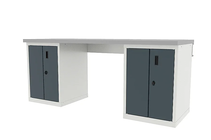 Металлический верстак Ferrum серии Titan, имеющий размеры 2000х700х843 h мм и оснащенный двумя вместительными тумбами, предназначен для оснащения рабочих мест на производствах, промышленно-ремонтных предприятиях, в легковых и грузовых автосервисах и др.