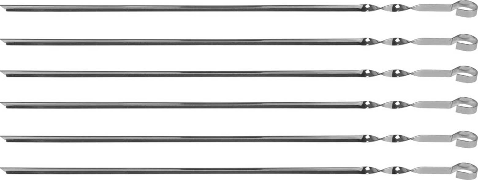 Шампуры GRINDA 427751, предназначены для жарки мяса, птицы, рыбы и овощей над огнем или углями. V-образный профиль шампура позволяет выдерживать вес крупных кусков. Витая рукоятка позволяет удобно и просто переворачивать мясо на мангале. Чехол в комплекте для удобства хранения и транспортировки. Толщина металла составляет 1 мм, ширина шампура - 1 см.
