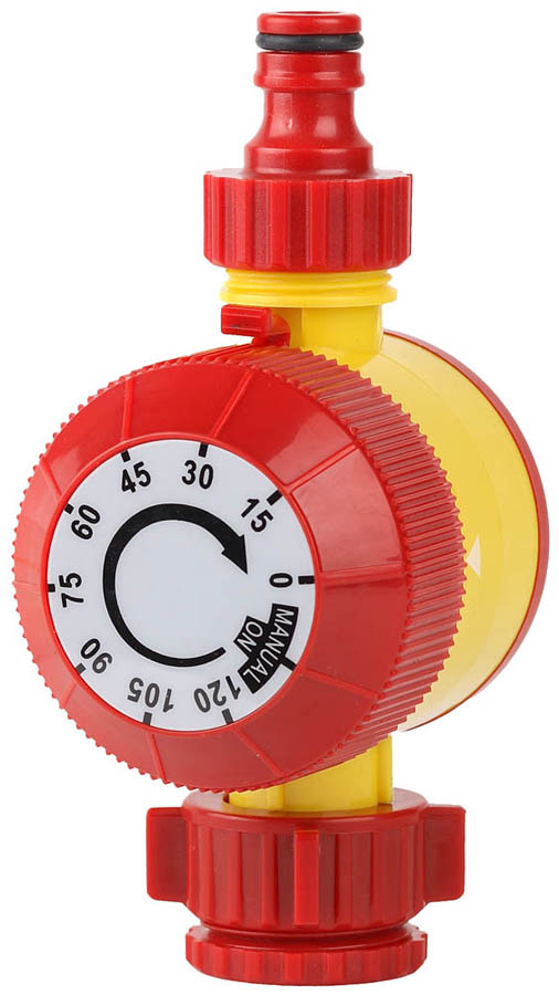 Таймер для управления подачей воды Grinda 8-427805_z01, предназначен для управления продолжительностью полива. Корпус изготовлен из легкого ударопрочного ABS-пластика. Надежная и полностью механическая конструкция не требует батареек или проводов, обеспечивает простоту эксплуатации и продолжительный срок службы изделия. Позволяет устанавливать время полива в диапазоне от 0 до 120 минут. Внешний адаптер позволяет присоединять таймер к водопроводной трубе или крану с внешней резьбой 3/4' или 1'. Сетчатый фильтр предохраняет изделие от засорения.