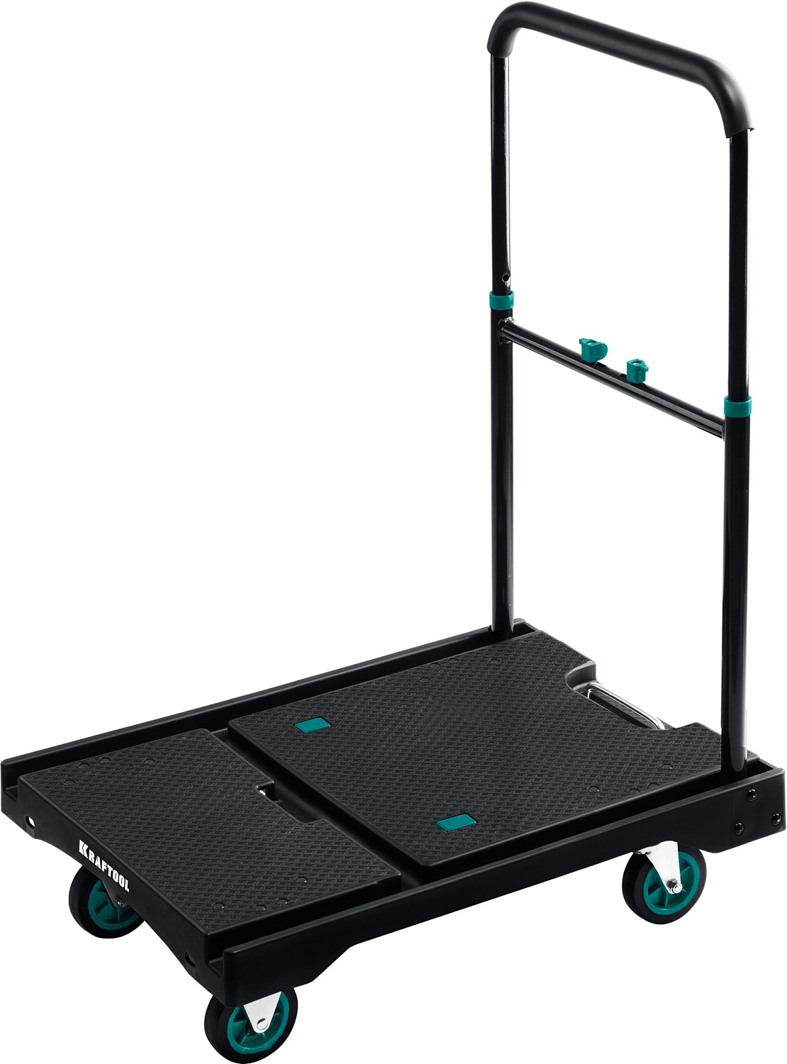 Тележка платформенная складная KRAFTOOL 38780-150 предназначена для перевозки различных грузов. Подходит для применения в быту, магазинах, складах, оптовых базах и т.п. Складная - удобна в хранении и перевозке. Широкая платформа подходит для габаритных грузов. Телескопическая рукоятка легко регулируется по высоте. Маневренность обеспечивается парой поворотных колёс.