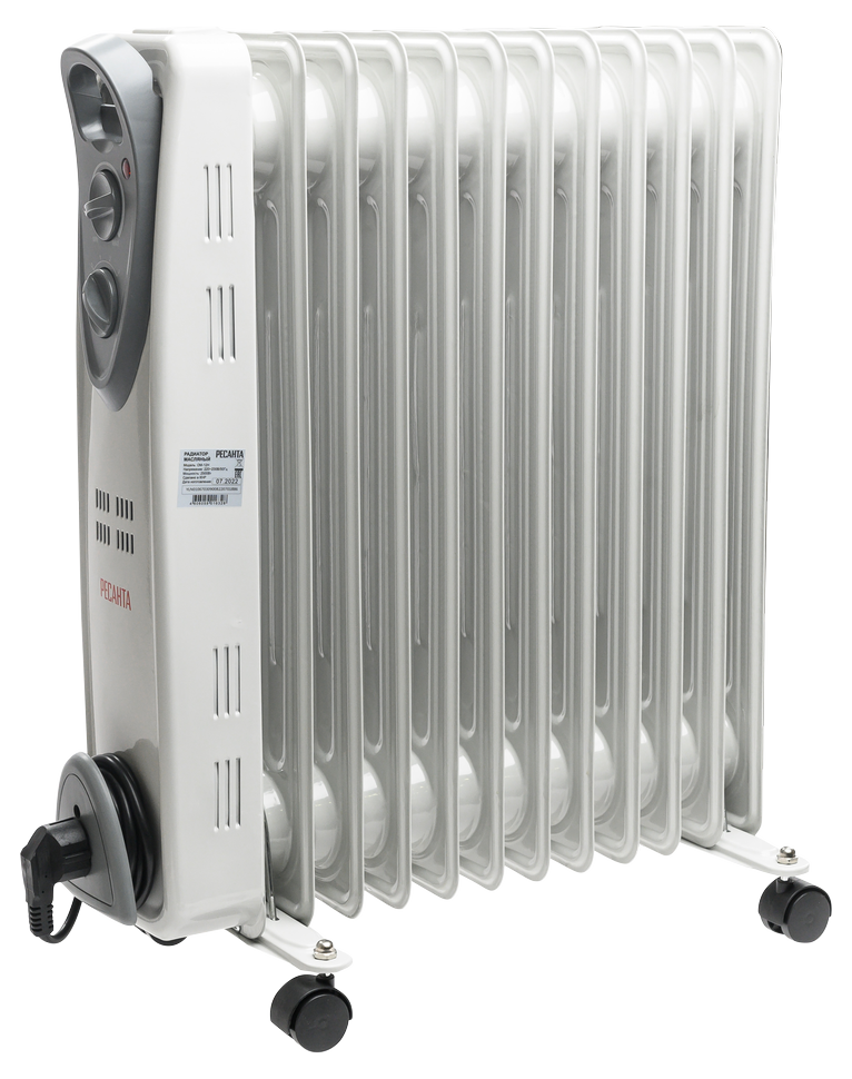 Масляный радиатор Ресанта ОМ-12Н – надежный и действенный прибор для отопления как жилого, так и нежилого помещения. Используют такие устройства чаще всего в качестве поддерживающего источника тепла во время межсезонья. Однако, он не менее популярен и как единственный способ обогрева.Принцип работы Ресанта ОМ-12Н прост. Внутрь корпуса заправлено масло, которое нагревательный элемент доводит до высокой температуры. Устройство нагревается и передает тепловую энергию окружающему воздуху.Отличительные особенности масляного радиатора:Мощность модели составляет 2,5 кВт, что позволяет эффективно и быстро обогреть до 30 кв.м. площади.12 секций создают большую площадь отдачи тепла, что позволяет воздуху быстрее прогреваться.Регулируемый термостат дает возможность задать температуру нагревания устройства.Три режима работы, отличающихся мощностью 1000/1500/2500.Надежная защита от перегрева позволяет не только избежать пожара, но и существенно продлевает срок службы изделия.Простота в монтаже. Достаточно прикрутить колесики или опоры.Вес устройства составляет всего 9,3 кг. На корпусе расположена ручка для переноски. Колесики позволяют легко катать радиатор с места на место.На корпусе расположен отсек для хранения шнура.Электрический масляный радиатор Ресанта ОМ-12Н способен стать существенной поддержкой основной системы отопления, а также полноценной его заменой в некоторых случаях. Простота использования, проверенная временем технология функционирования и надежность делают его одним из самых популярных отопительных приборов.