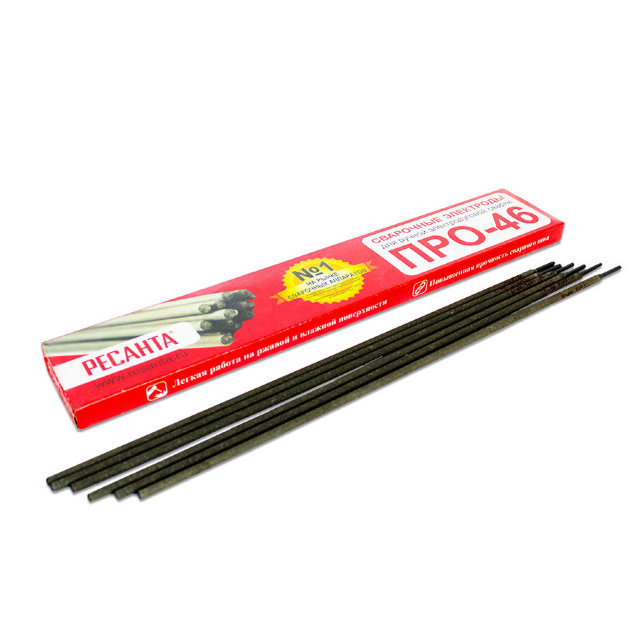 Сварочные электроды РЕСАНТА предназначены для ручной дуговой сварки стальных конструкций переменным или постоянным током. Данные электроды могут применяться как в быту, так и для сварки ответственных конструкций из углеродистой стали с массовой долей углерода до 0,25%. Сварка возможна в различных пространственных положениях, кроме сварки на спуск. Электрод представляет собой металлический стержень из электропроводного материала, предназначенный для подвода тока к свариваемому изделию.Сварочные электроды РЕСАНТА ПРО-46:• Малочувствительны к качеству подготовки кромок свариваемых деталей• Позволяют проводить сварку оцинкованной, окрашенной, загрязненной и слегка ржавой стали, а также на обильно увлажненной поверхности• Обладают повышенной, на 20% большей, прочностью сварного шва по сравнению с электродами марки МР-3• Позволяют выполнять сварку на предельно низких токах во всех пространственных положениях, в том числе 'сверху вниз'• ПРО-46 просты в применении даже для начинающих сварщиков, в сравнении с моделями основных конкурентов, т.к. отличаются более легким начальным и повторным поджигом, мягким и стабильным горением дуги• Малые потери металла от разбрызгивания• Отличное формирование металла шва• Легкая отделимость шлаковой корки• Возможность проводить сварку на переменном и постоянном токах• Малочувствительны к качеству поверхности