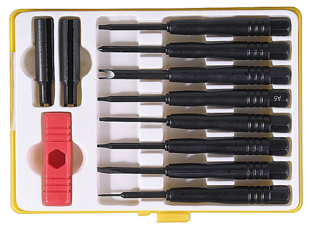 Набор отверток STAYER 25615-H11, предназначен для выполнения прецизионных работ в электронике и электромеханике. В комплект входят стандартные и специальные отвертки для ремонта мобильных устройств. Дополнительная двухпозиционная рукоятка обеспечивает легкое и удобное закручивание и повышает точность выполнения работ.