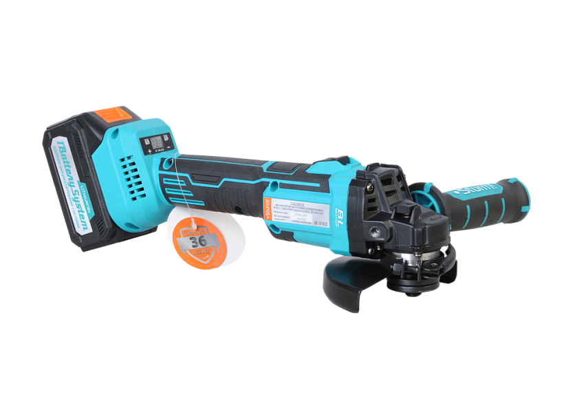 - Комплектация : Шлифмашина, зарядное устройство, аккумуляторная батарея, защитный кожух, боковая рукоятка, фланцевый ключ, винт с гайкой, пластиковый кейс