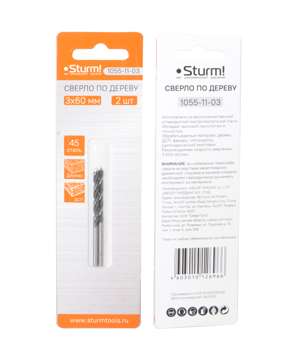 Диаметр (мм) : 3 |Длина (мм) : 60 |Рабочая длина (мм) : 35 |Тип хвостовика : цилиндрический |Артикул : 1055-11-03 |Производитель : Sturm! |Диаметр (мм) : 3 |Длина (мм) : 60 |Назначение : Предназначен для сверления глухих и сквозных отверстий в древесине, ДСП, ДВП |Рабочая длина (мм) : 35 |Тип хвостовика : цилиндрический |Вид упаковки : Блистер |Габариты в упаковке (ДхШхВ, см) : 18x5x0,5 |Основной штрихкод : 4603010126966 |