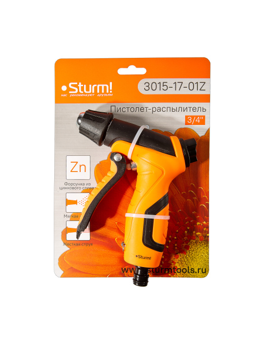 Артикул : 3015-17-01Z |Производитель : Sturm! |Назначение : Он используется для полива садовых и огородных участков, а также применяется в парках и скверах. Пистолет для полива сочетает в себе надежное исполнение, эргономичный дизайн. |Габариты в упаковке (ДхШхВ, см) : 24 X 17 X 4 |Основной штрихкод : 4603010119661 |