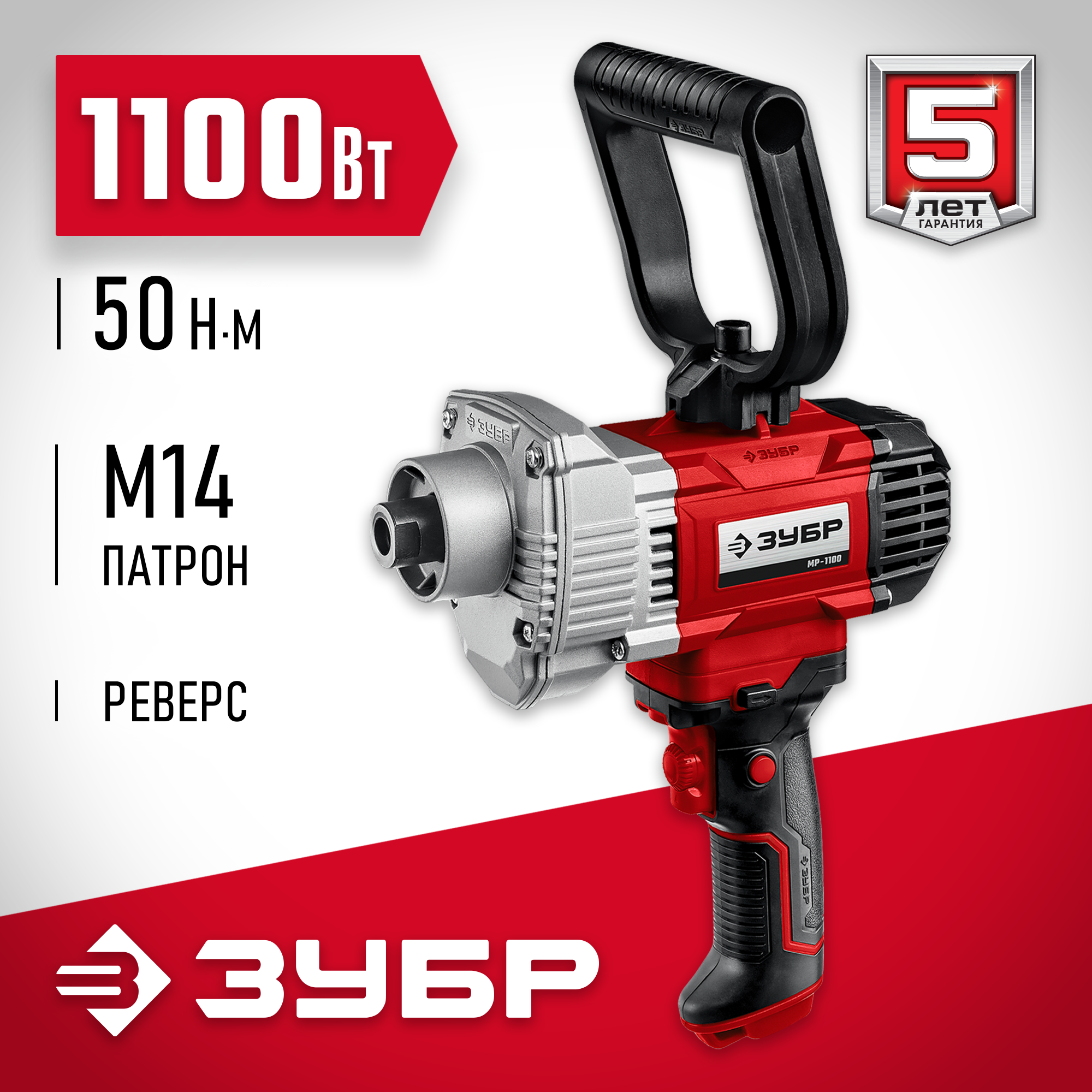 ЗУБР 1100 Вт, сверху/вниз, 0-600 об/мин, М14 патрон, миксер строительный МР-1100 Мастер