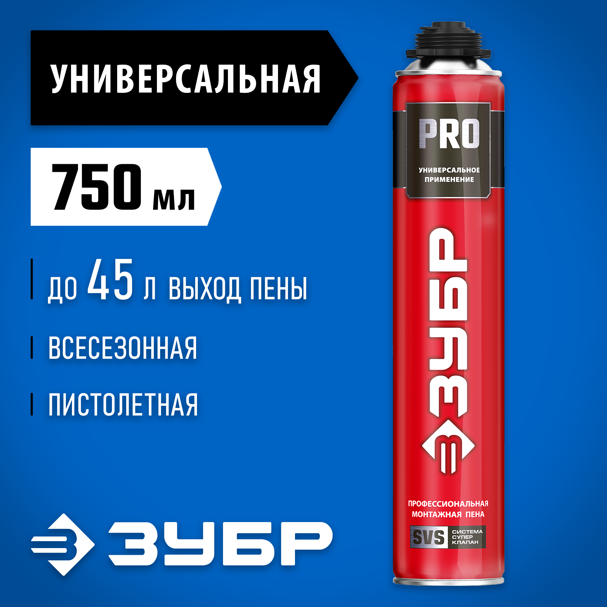ЗУБР 750 мл, пистолетная, монтажная пена ''ПРО'' 41145_z01
