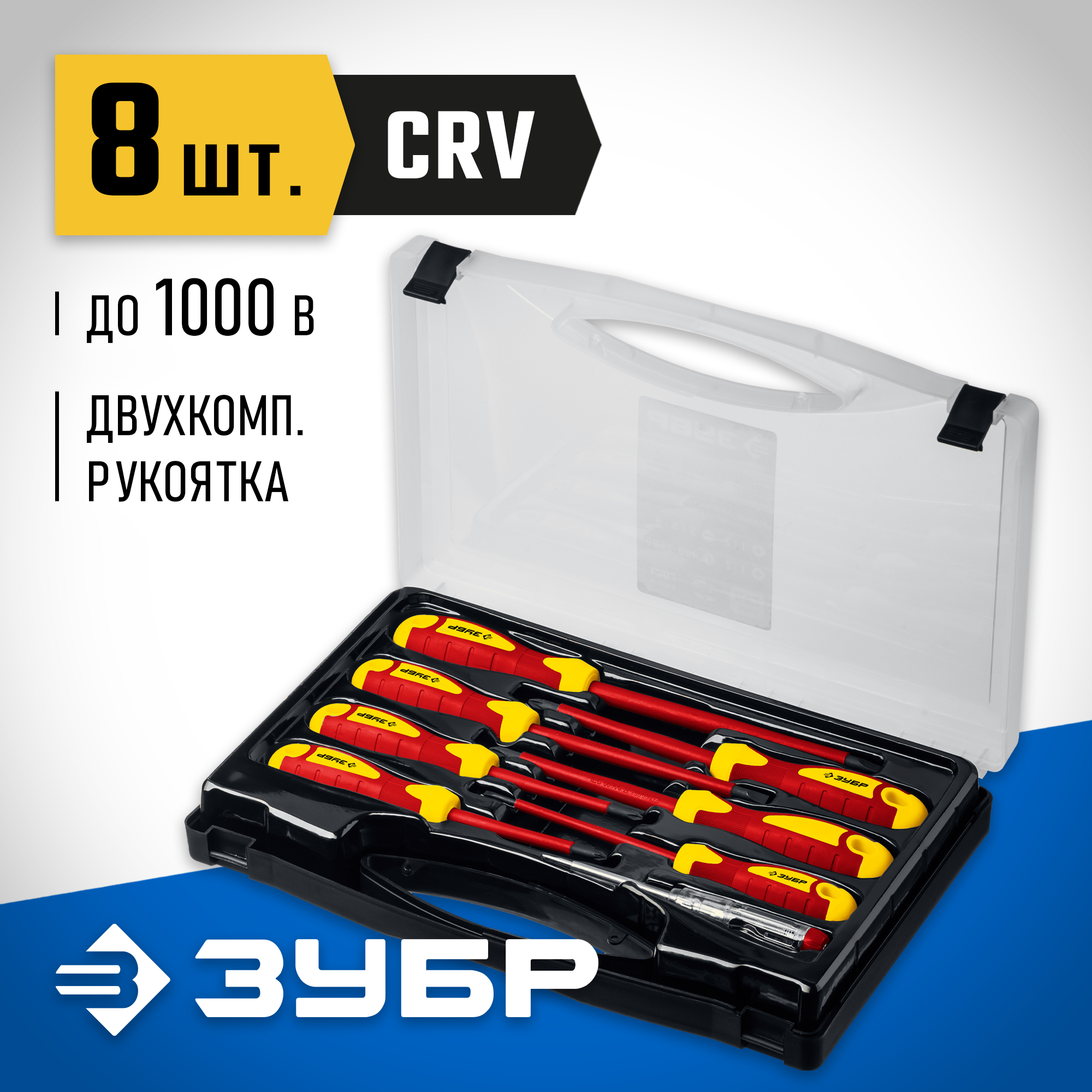 ЗУБР 8 шт., набор отверток+тестер 25268 Профессионал