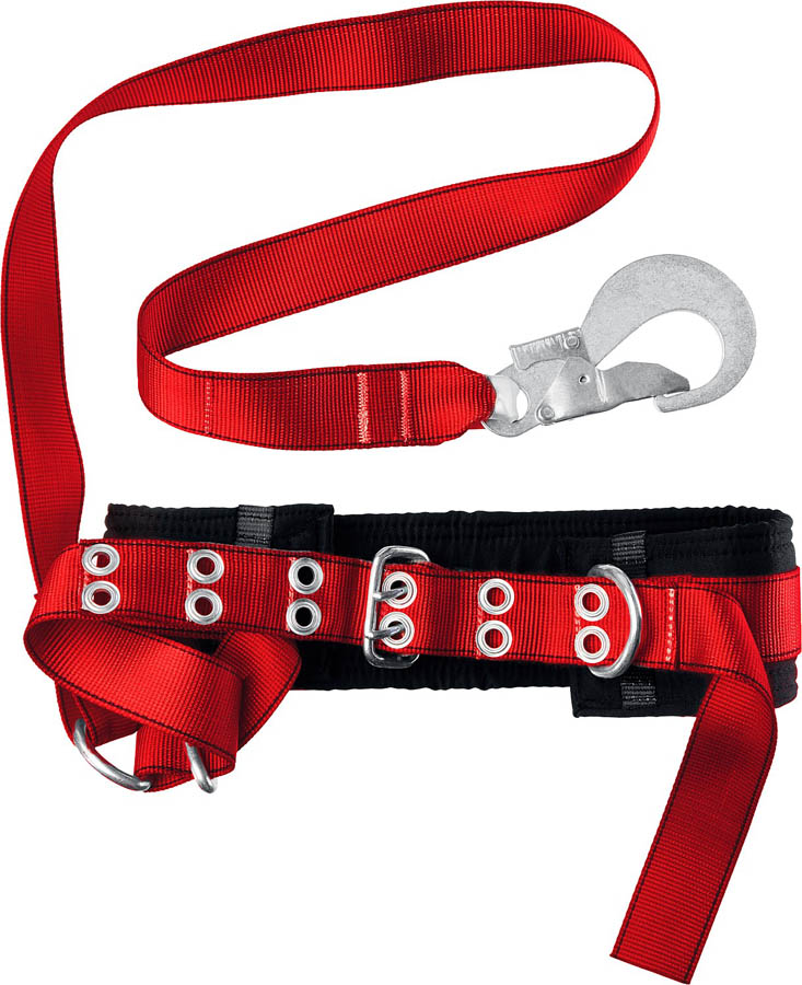 Безлямочный пояс ЗУБР 11585, применяется как средство защиты от падения с высоты. Статистическая разрывная нагрузка не менее 15kH. Имеются вшитый страховочный строп и стальные детали с цинковым покрытием. Температура эксплуатации от -40 до +50 градусов.