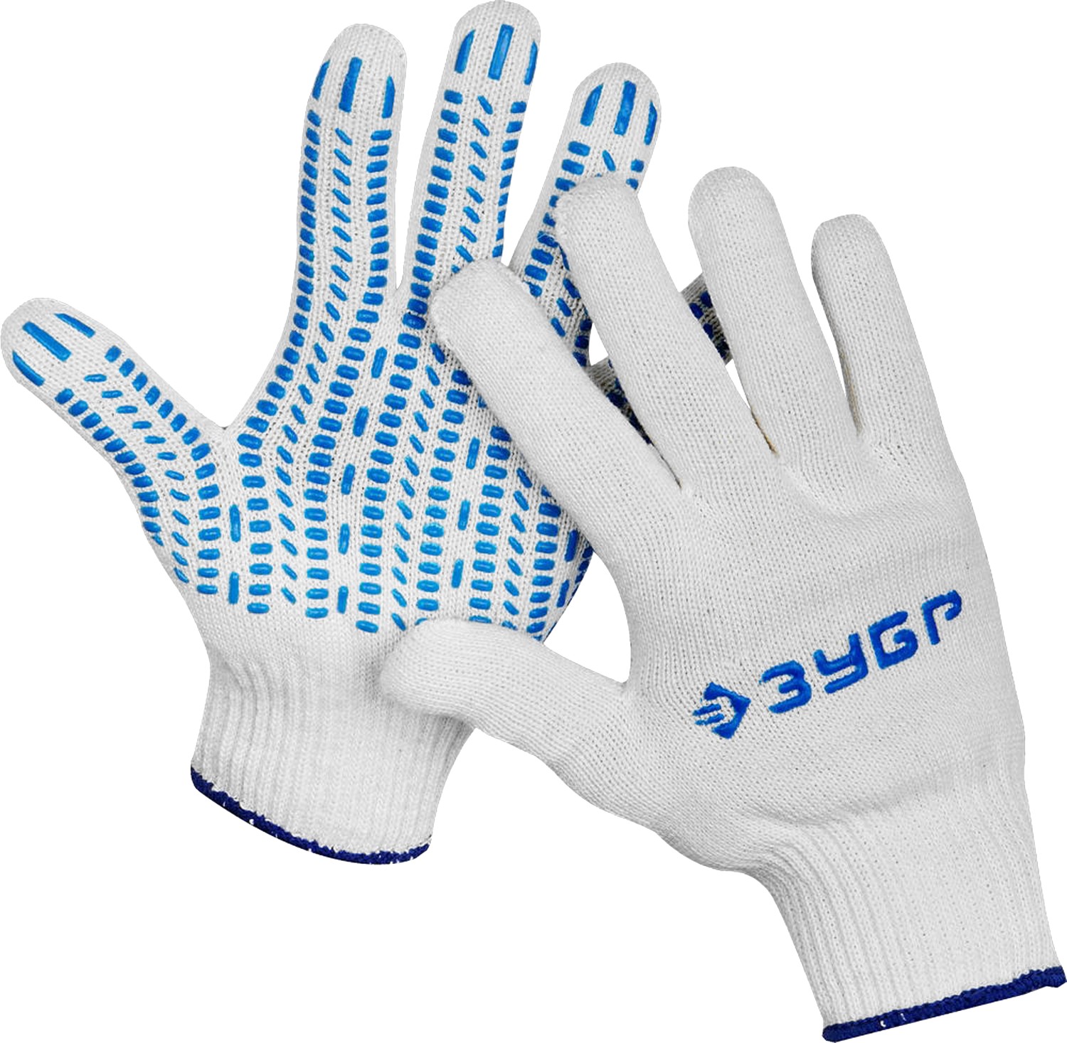 ЗУБР S-M, 10 класс, х/б, перчатки с увеличенной площадью ПВХ-гель покрытия ''протектор'' 11452-S Профессионал