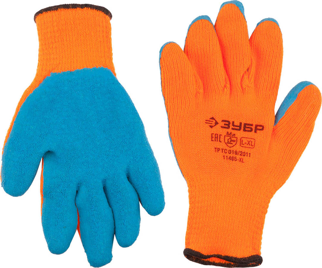 ЗУБР L-XL, 10 класс, с рельефным латексным покрытием, сигнальный цвет, перчатки утепленные акриловые УРАЛ 11465-XL Профессионал