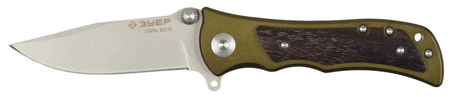 Нож ЗУБР 47713, предназначен для реза дерева, пластмасс, тканей. Сталь 95Х18 (аналог стали ASU10) обеспечивает отличный рез и стойкость режущей кромки. Металлическая рукоятка с деревянными накладками обеспечивает комфорт применения. Возможность быстрого открытия как левой, так и правой рукой.